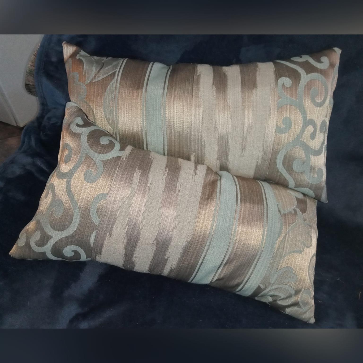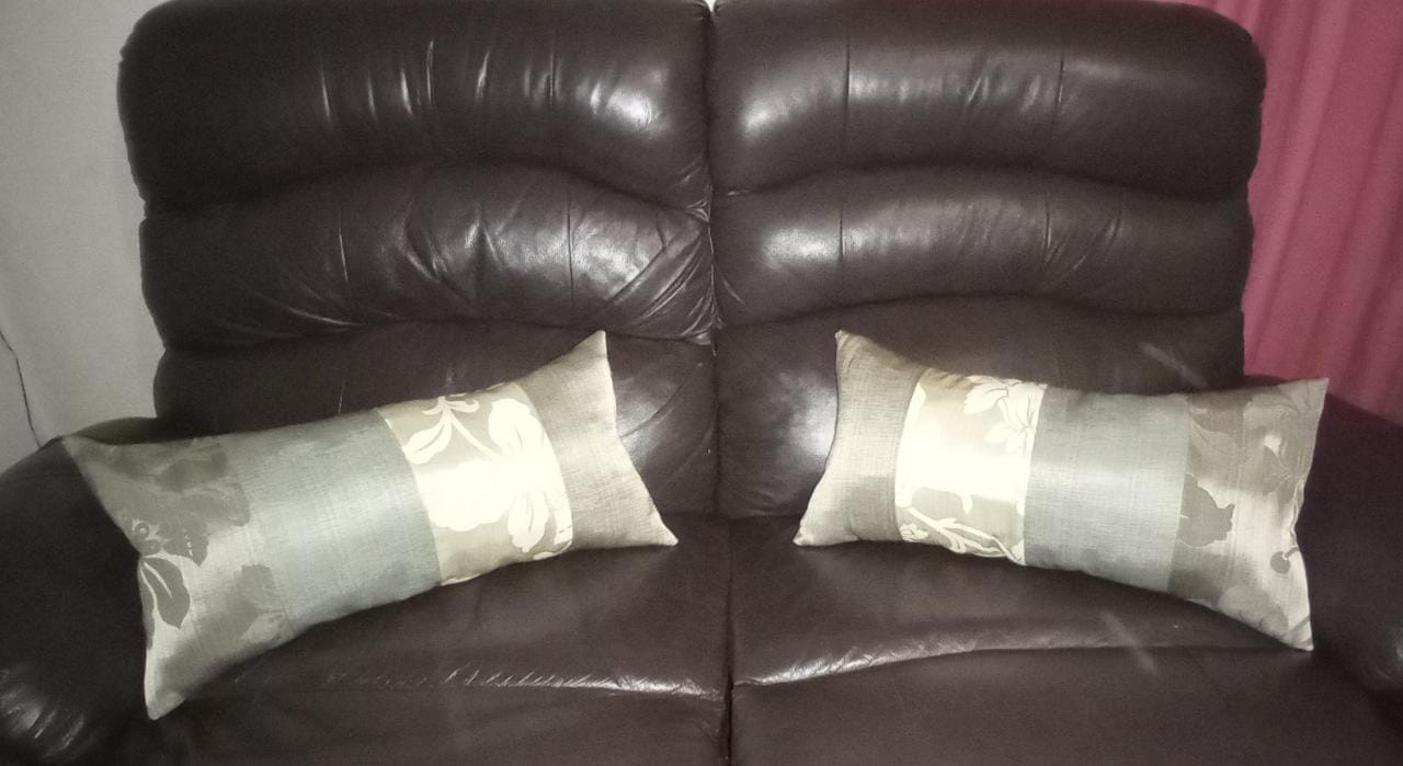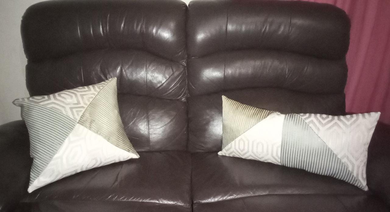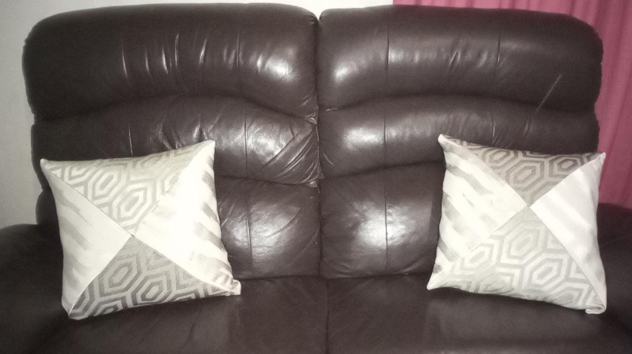 Beautiful Two-tone fabric scatter pillows with black backing. Removable inners. Concealed zip. Square pillows 40cm x 40cm. Rectangular pillows 30cm x 60cm. No mass production. Once-Off. Home Made.