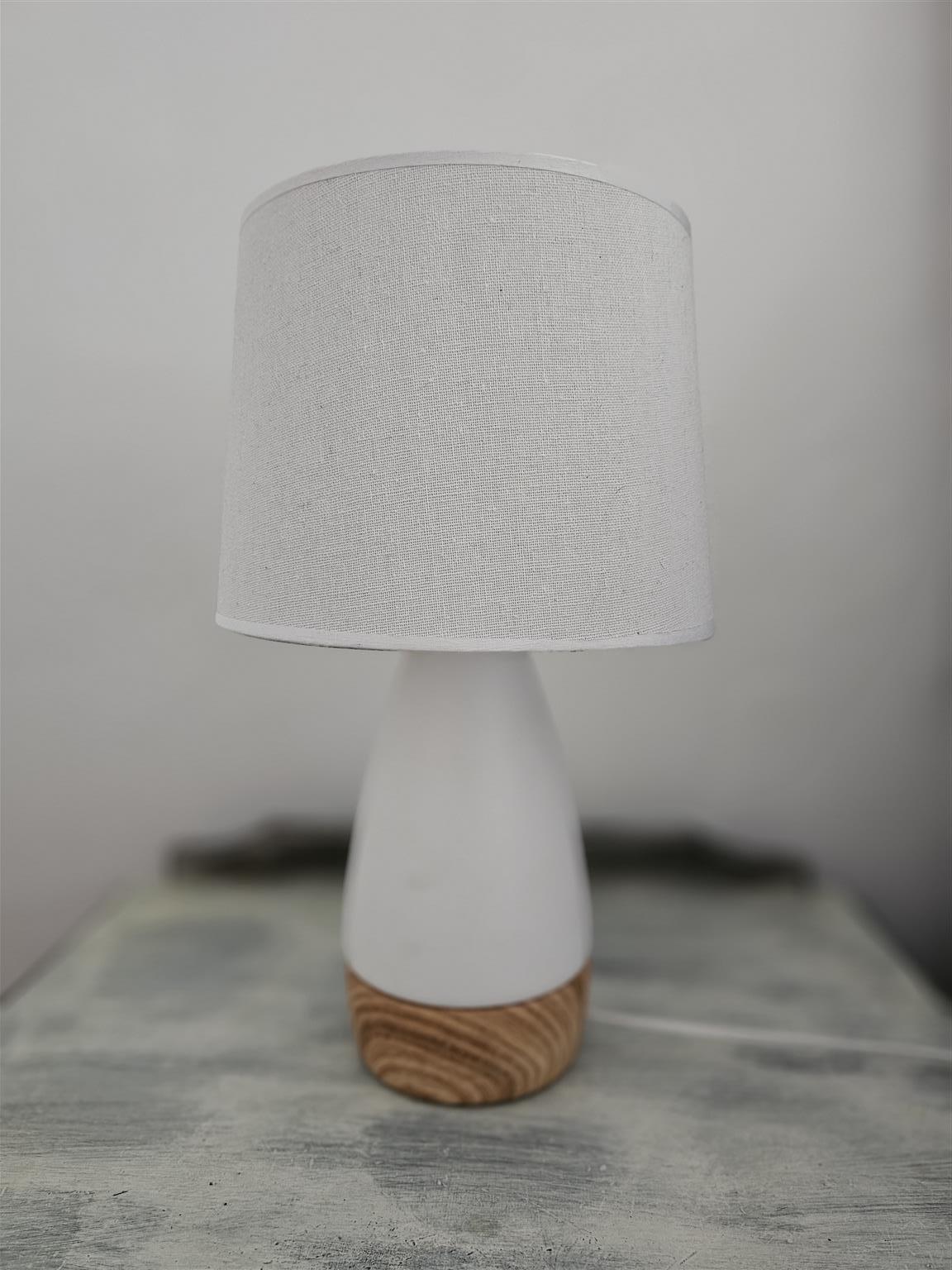 Plain white with wood bottom bedside table lamp x 2. Still as new.