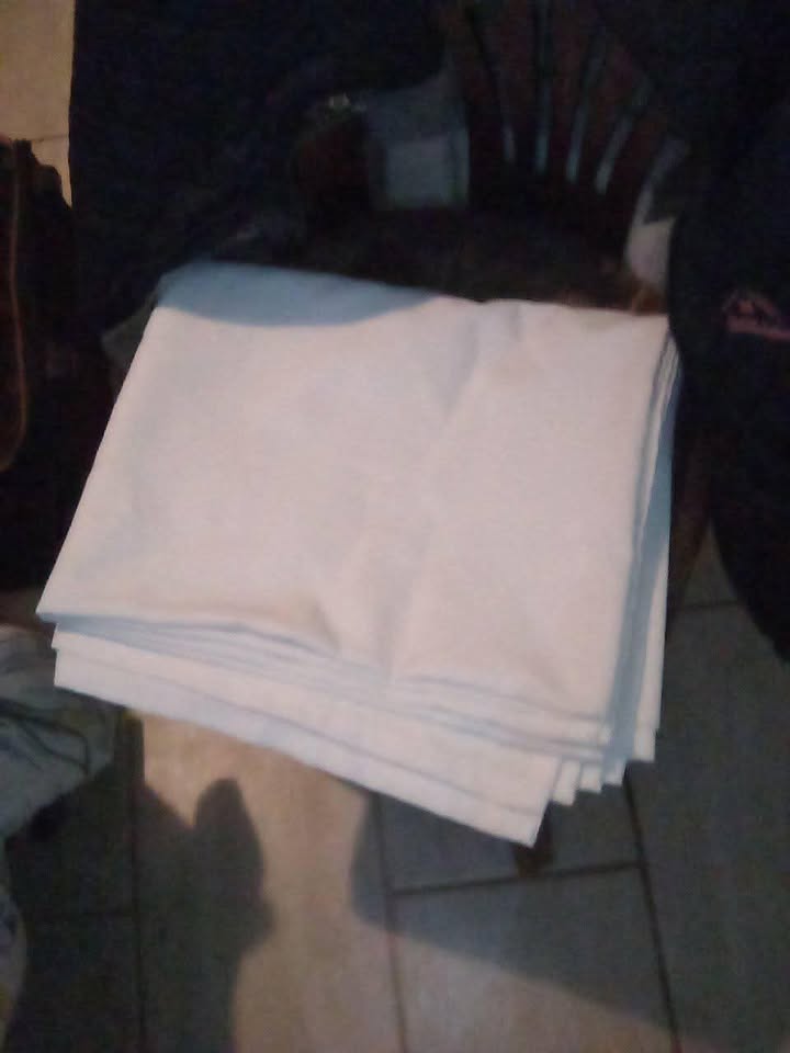 Double fitted sheets - R15 each.. Round Lace Table cloth - R40.. Extra Large White Table cloth - R80.. Large Pink Table cloths - R15 each.. Pillow case sets - R10 per set.. Pink & Black Table cloth - R40.. Double Comforter with pillow case - R120.. Blanket - R80.. Unmatched Pillow cases - R1.50 each.. Toilet seat cover - R5.. Single Frill sheet - R8.. Double Frill sheet - R12.. Double Flat sheet - R12.. Lace Curtains - R40 each.. Brown Full length Curtains +/- 2m - R120.. Dark Green Full length Curtains +/- 3m x 2m - R170.. Pink Half length Curtains +/- 2m - R80.. Florida Park /