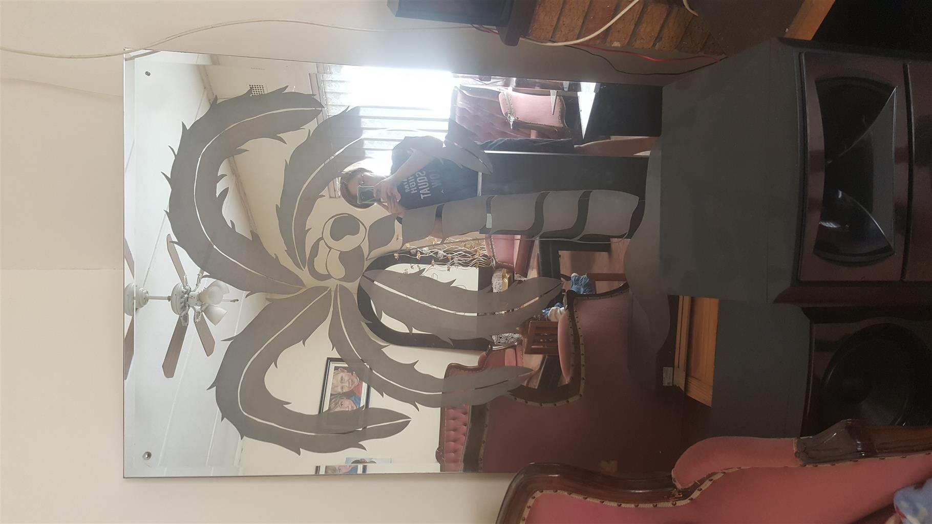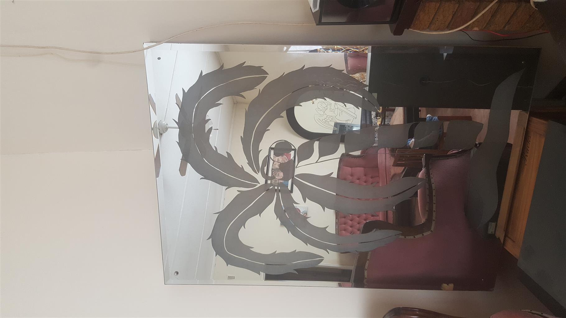 Mirror in frame with palm tree motive is perfect for a entry way it has a light built in aswell for nightly beauty