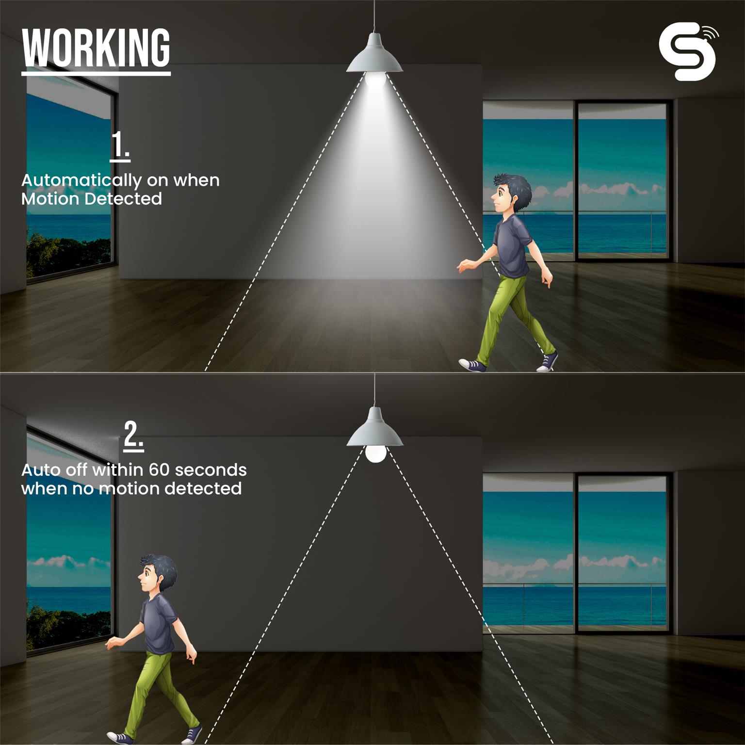 The ESYSENSE motion sensor bulb is a smart lighting option featuring radar technology that detects motion and automatically turns on or off. This sensor bulb is highly sensitive, capable of detecting movement through walls, glass, or doors. Its energy-saving design ensures the light activates only when needed. Perfect for indoor and outdoor areas like hallways, garages, or staircases, the ESYSENSE radar bulb offers convenience, safety, and easy installation.