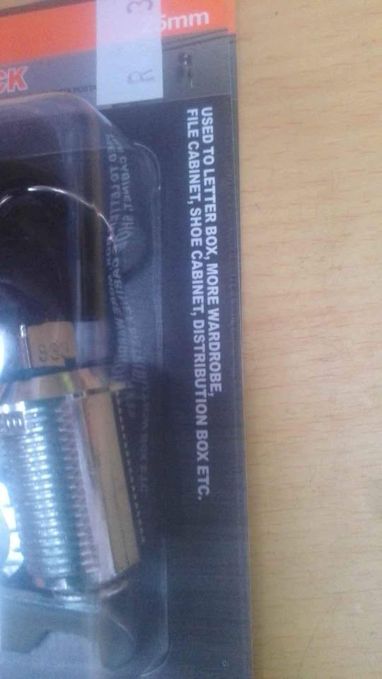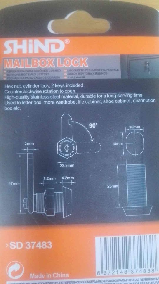 USED TO LETTER BOX ,MORE WORDROBE FILE CABINET ,SHOE CABINET , DISTUBUTION BOX ETC. TWO KEYS 18MM HOLE 25 MM LONG 90 ° ROTATION DIFFRENT LOCK KEYS CAN NOT BE UNIVERSAL