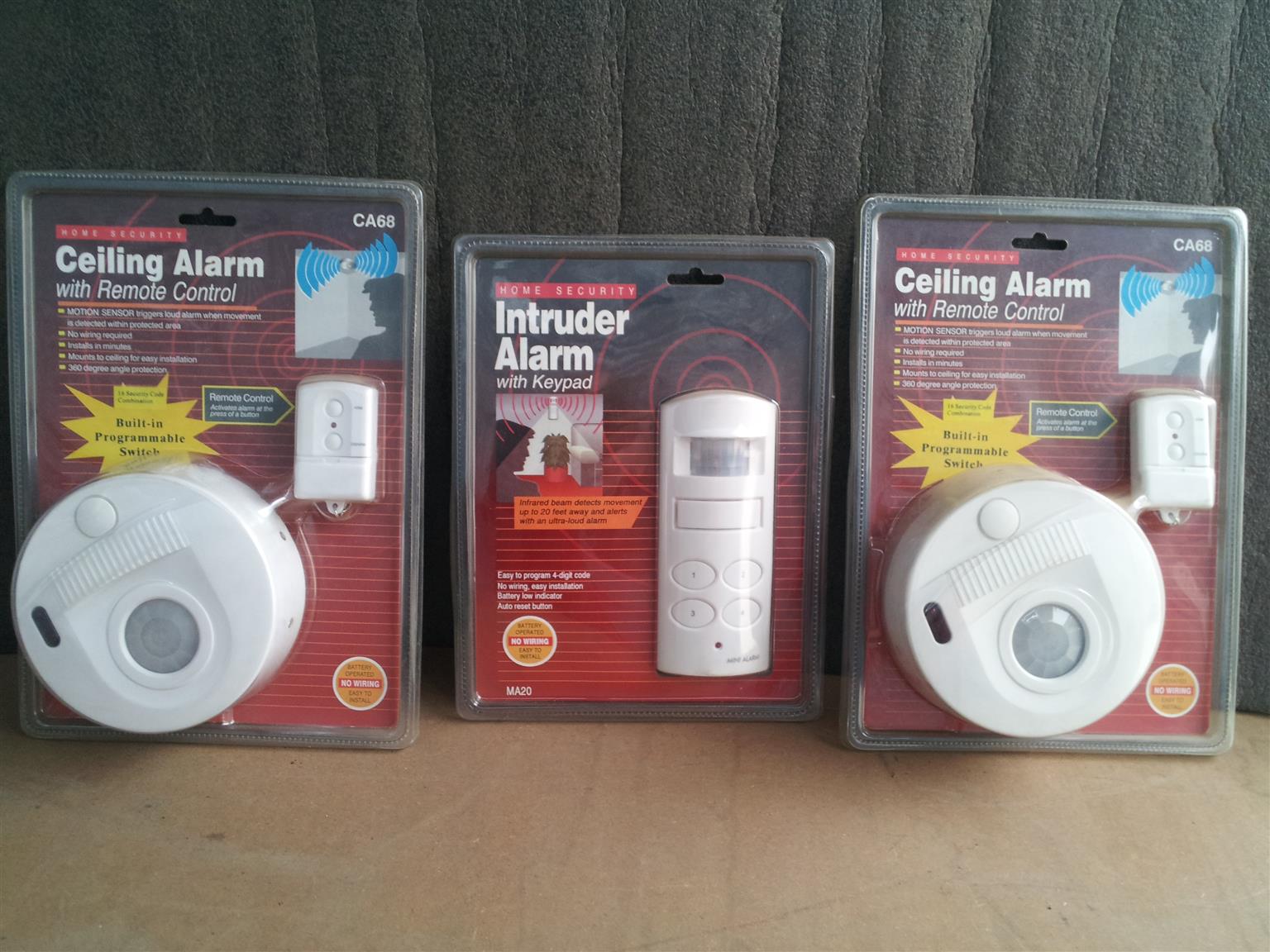 PORTABLE battery operated and transformer operated ceiling and stand alone passive alarms with remote controls, units without remotes are number key activated. DEMO units also available. Suitable for your home ,caravan ,out door garden sheds,camping tents and bungalows. Fitted with 110 dB plus sirens.uses variable step down a/c transformers.