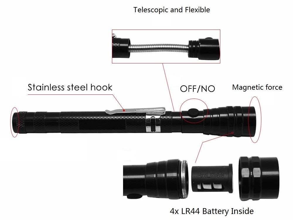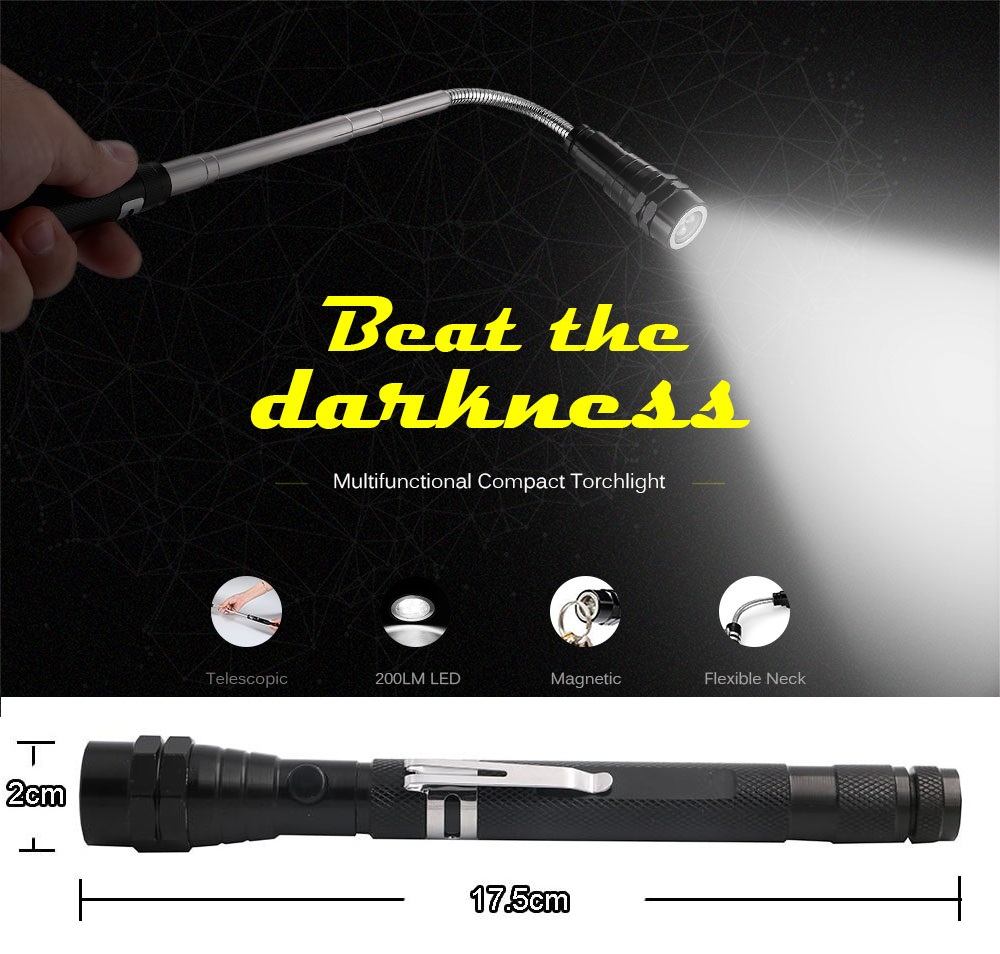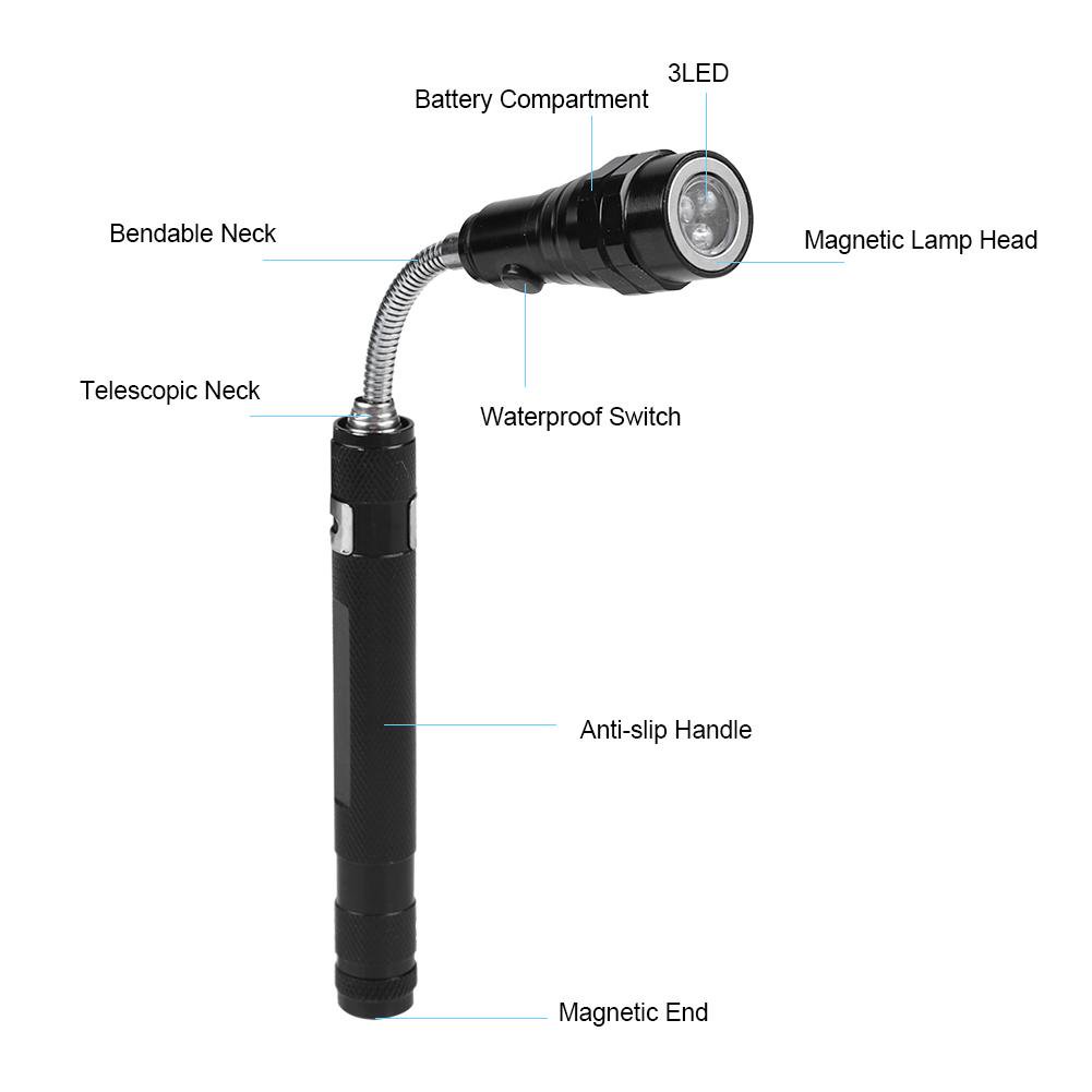 Flexi Torch 3-LED Telescopic Flexible Bendable Magnetic Pick-Up Tool Flashlight.