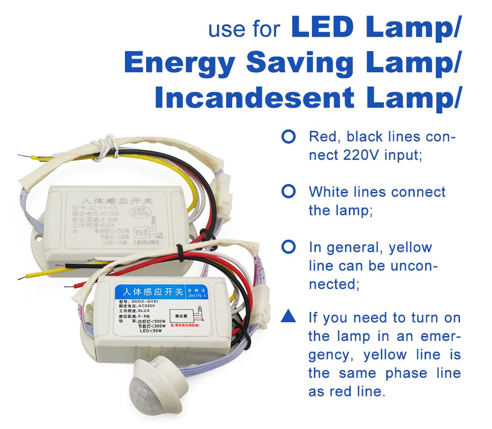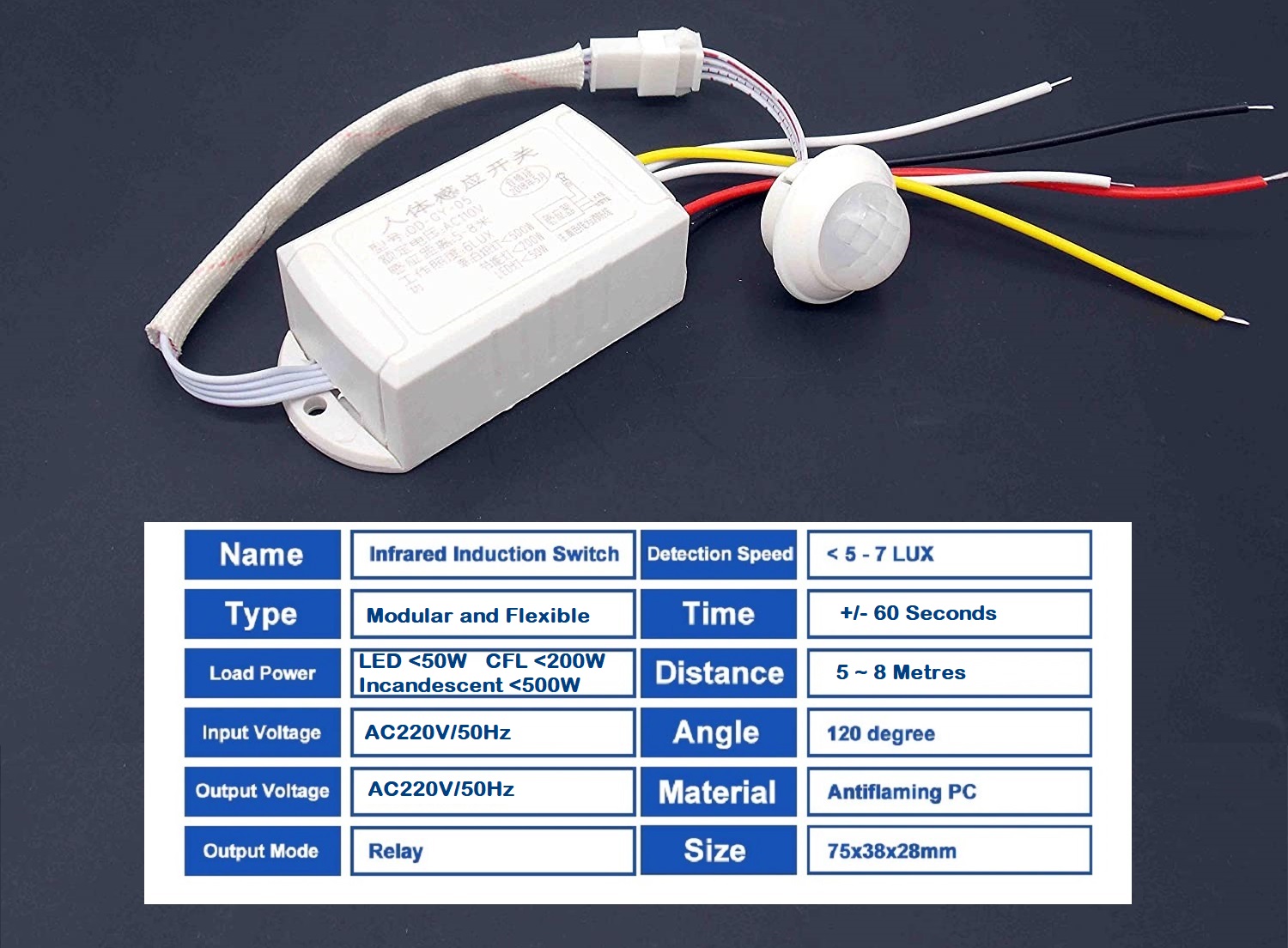Infrared PIR Body Motion Sensor Induction Switch / Module Automatic Light/Lamp Control Switch Motion Sensor Switch.