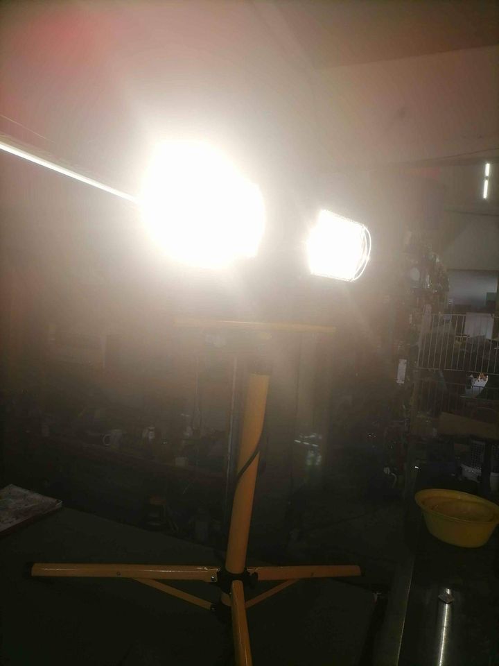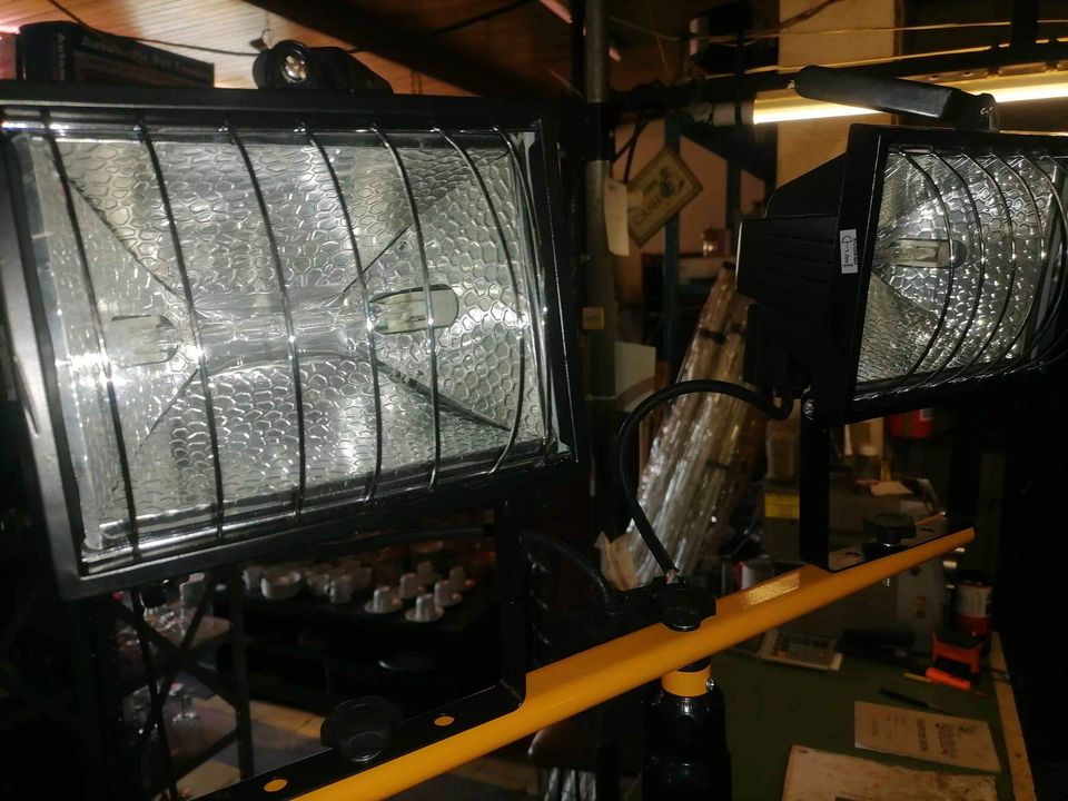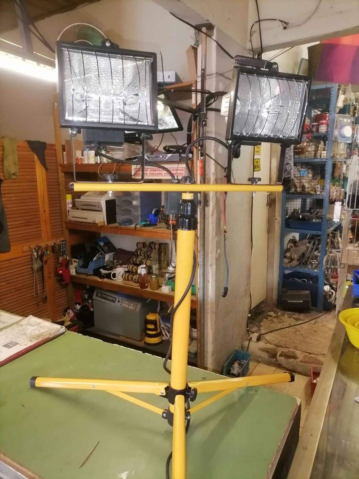Fitted with 2 x 500 W halogen lights mounted on a lightweight aluminium adjustable stand this set is ideal for any DIY or construction application Please contact Country Auctioneers on WhatsApp on for more information