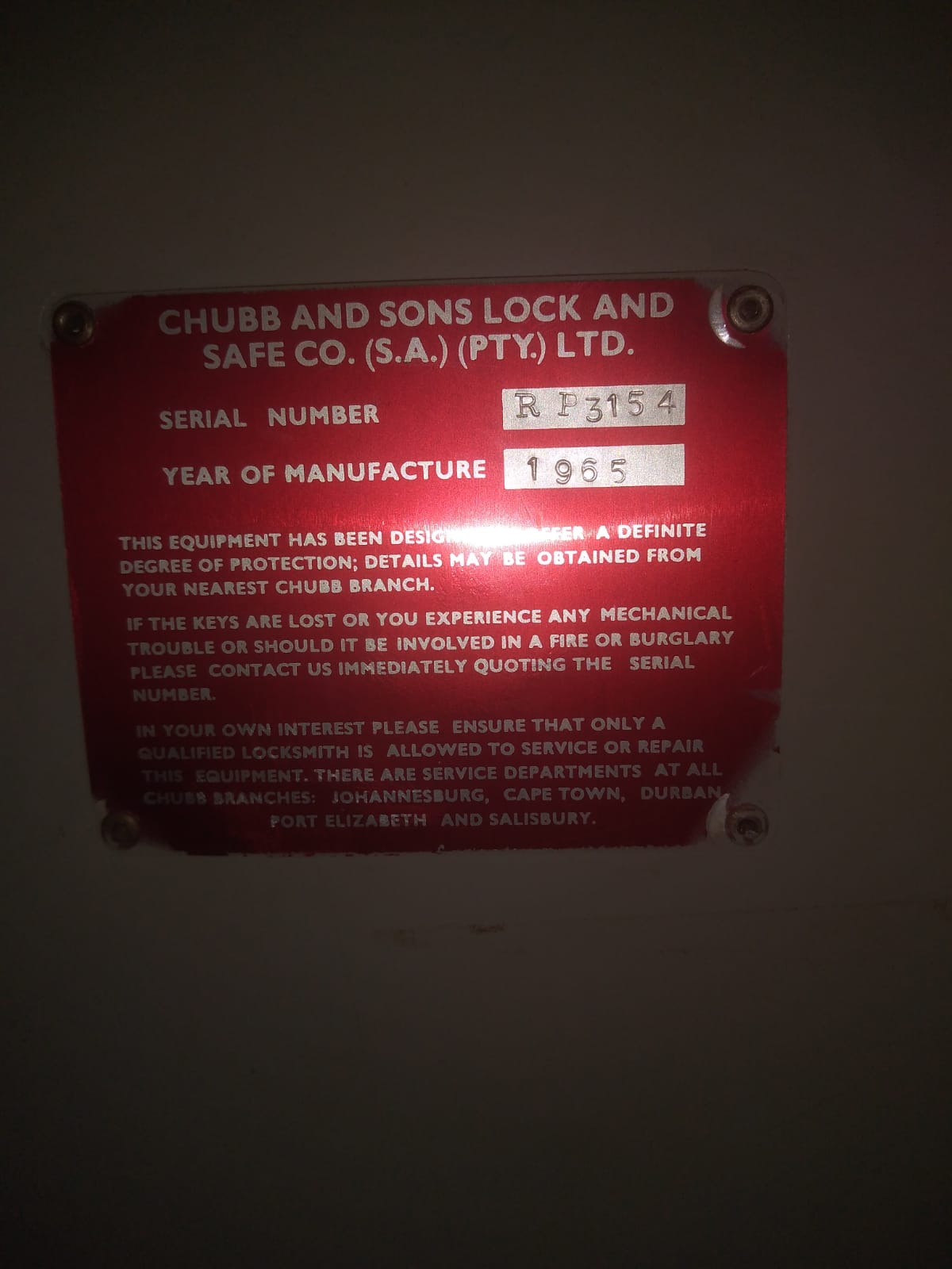 Chubb & Sons Lock and Safe for sale. Cash R6500 negotiable. Work 100%. Self pick up in Queenswood Pretoria. Call or whatsapp 0814625932view more