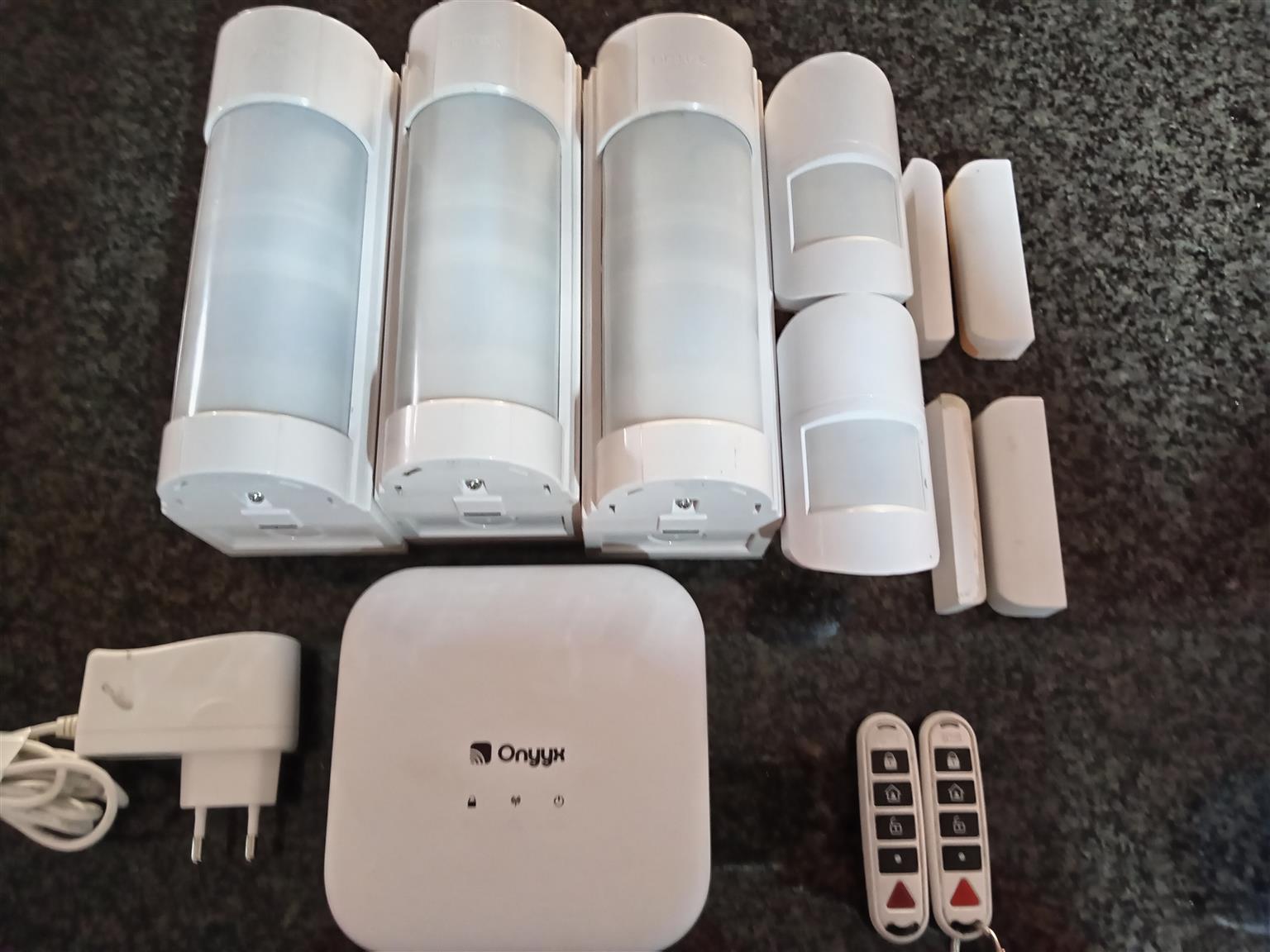 Onyx wireless alarm system with 3outside beams 2inside beams 2door contacts and 2remotes 6months old like new