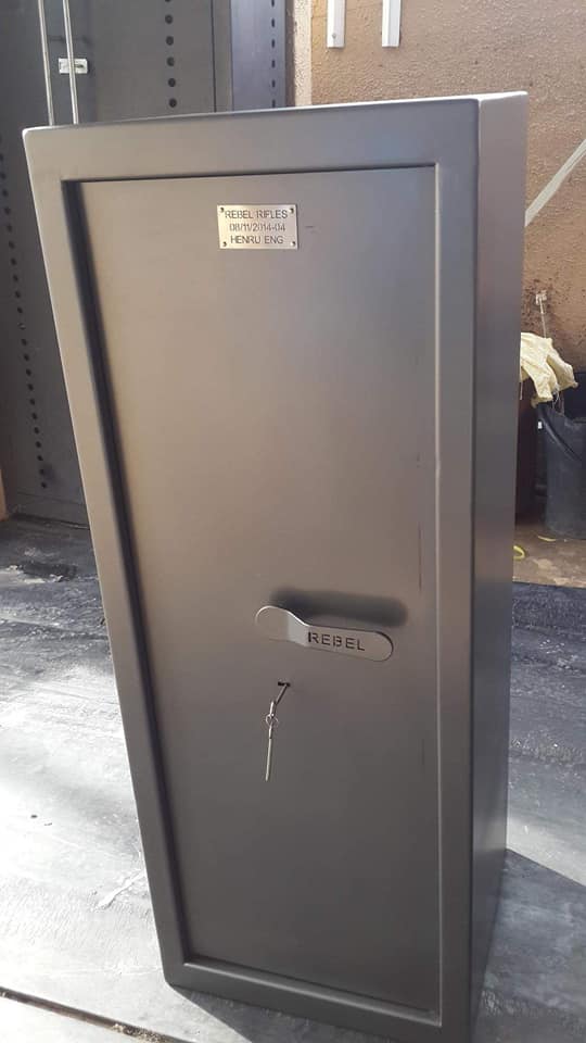 Rebel Rifle Safe Sa(Pty)Ltd After seven years still doing our best to give our clients the best quality safes at the lowest price! Bulk 1500x1000x500 R11800 excl Mem Safes 1 Rifle R2000 excl 2 Rifle R2200 excl 3 Rifle R2650 excl 6 Rifle R3900 excl Bulk Mem 1500x1000x500 R10800 Safes for Africa 3 Rifle R2300 excl 4 Rifle R2750 excl 6 Rifle R4000 excl 6 Rifle Double Door R4900 excl 10 Rifle R4900 excl 10 Rifle Double Door R6000 excl Bulk 1500x1000x500 R11900 Custom on this model available at addition charges. Universal Safes 3 Rifle R2850 excl extra lang 1450mm 6 Rifle R3900 excl 2-3 Rifle half shelves in safe R2850 excl Address 9 Boskraai Place Bromhof Randburg Cell Gerhard