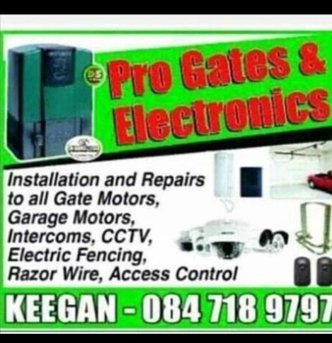 Gate Motors, Garage doors/Motors, Roller shatter Doors ,Intercom systems, CCTV, Electric Fencing, Razor Wire, Mag/Strike Locks, access Control, Steel Work, Household Electrical/Maintenance , Solo Systems, plumbing etc... Contact Keegan: 0847189797view more.