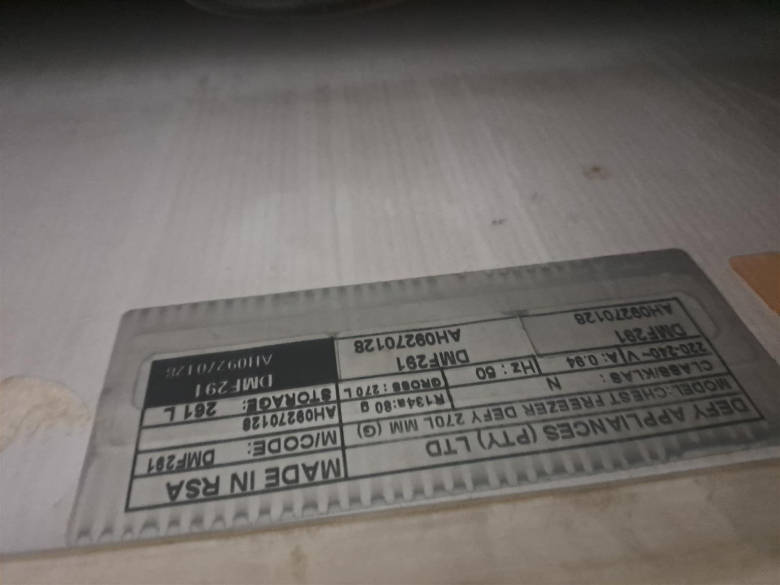 Defy chest freezer in perfect working. Condition. R3000 onco
