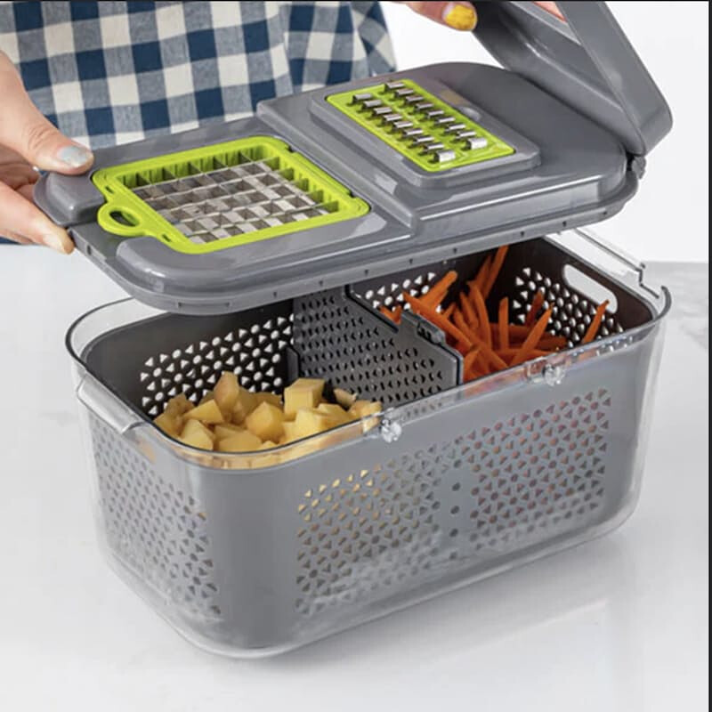 This vertical slicer and chopper are made of stainless steel blades and a high-quality BPA-Free food grade. The plastic is ABS which is a top-quality material, that has no toxicity that allows you to keep your chopped fruit and vegetables, in their original flavour without an odour from the product.