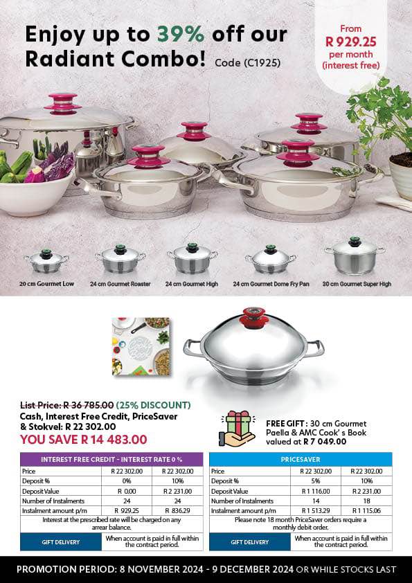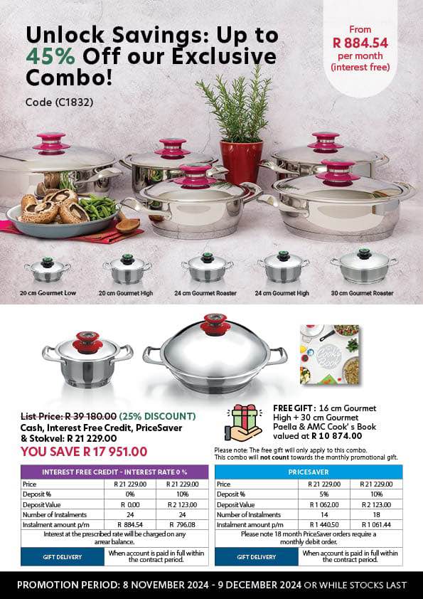 🔥Lifetime Guarantee Cookware 🔥Waterless and Fat-free Cooking 🔥Buy on interest free credit 🔥Free Delivery 🔥Credit, PriceSaver, Stokvel or Cash Orders Types Available WhatsApp