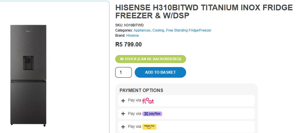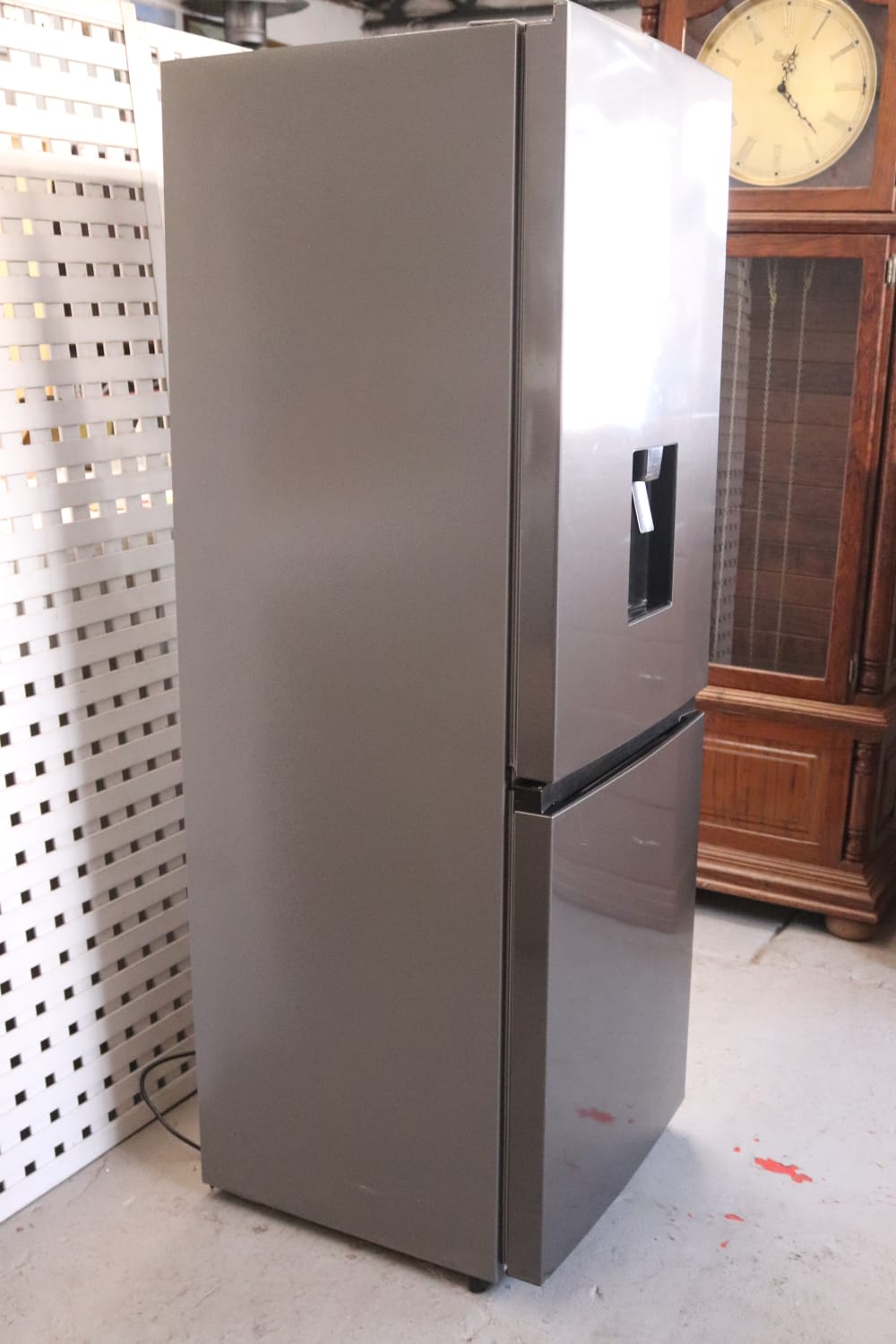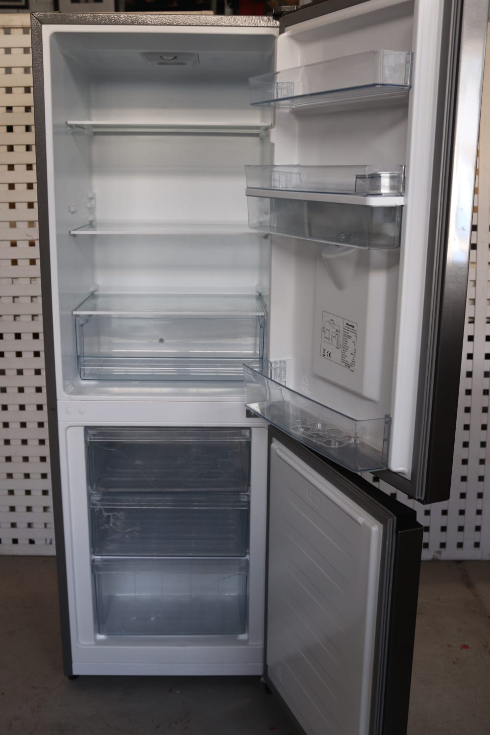 Brand New Hisense Fridge/Freezer in Excellent Condition. New and available as soon as possible. Water dispenser,one cracked shelf but does not affect anything. Retail selling price is R5800