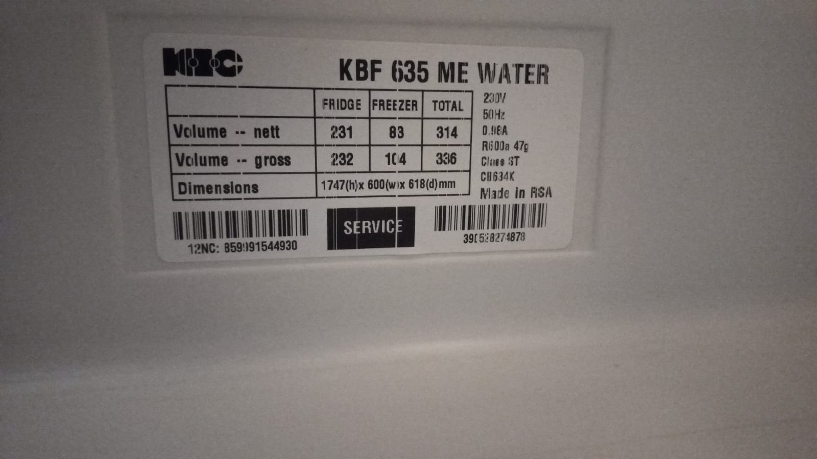 This middle-sized 60 cm bottom mount fridge with Water Dispenser offers you the best solution if you need more storage space. It offers a 314 litre NETT capacity, a big 3L water tank and convenient water dispenser, adjustable balconies and a deep Big Balcony that fits up to 4 x 2.25 litre bottles in the door.