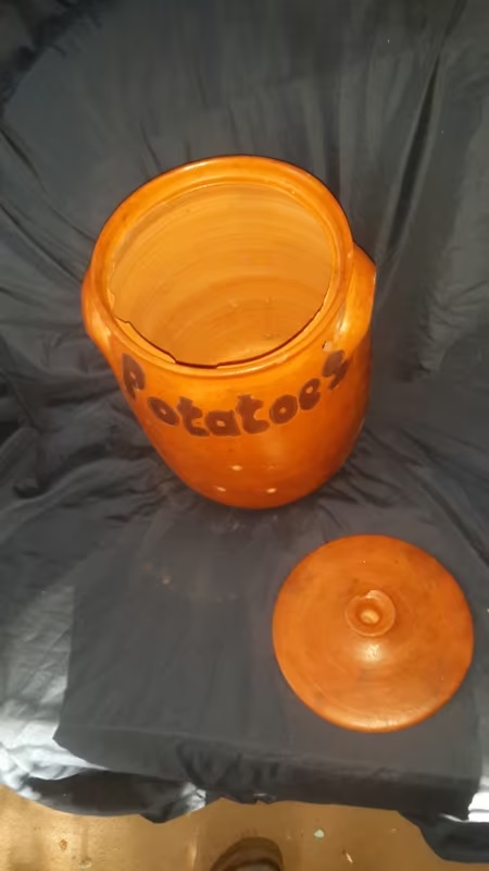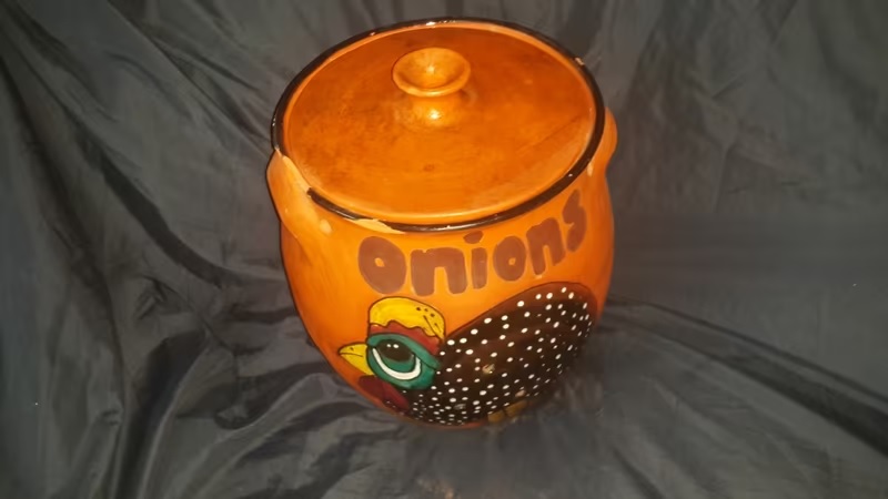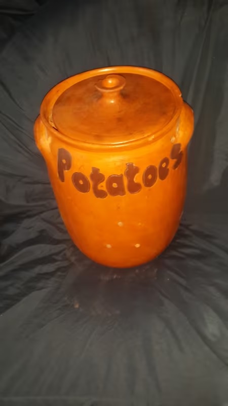 Pair of large Potatoes and Onion terracotta storage containers with lids