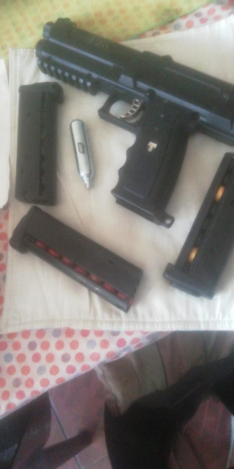 Tippmann Deluxe paintball gun. Mint condition. Included is service kit, 3 magazines, holster. Must go urgently. Price negotiable. Perfect gift.
