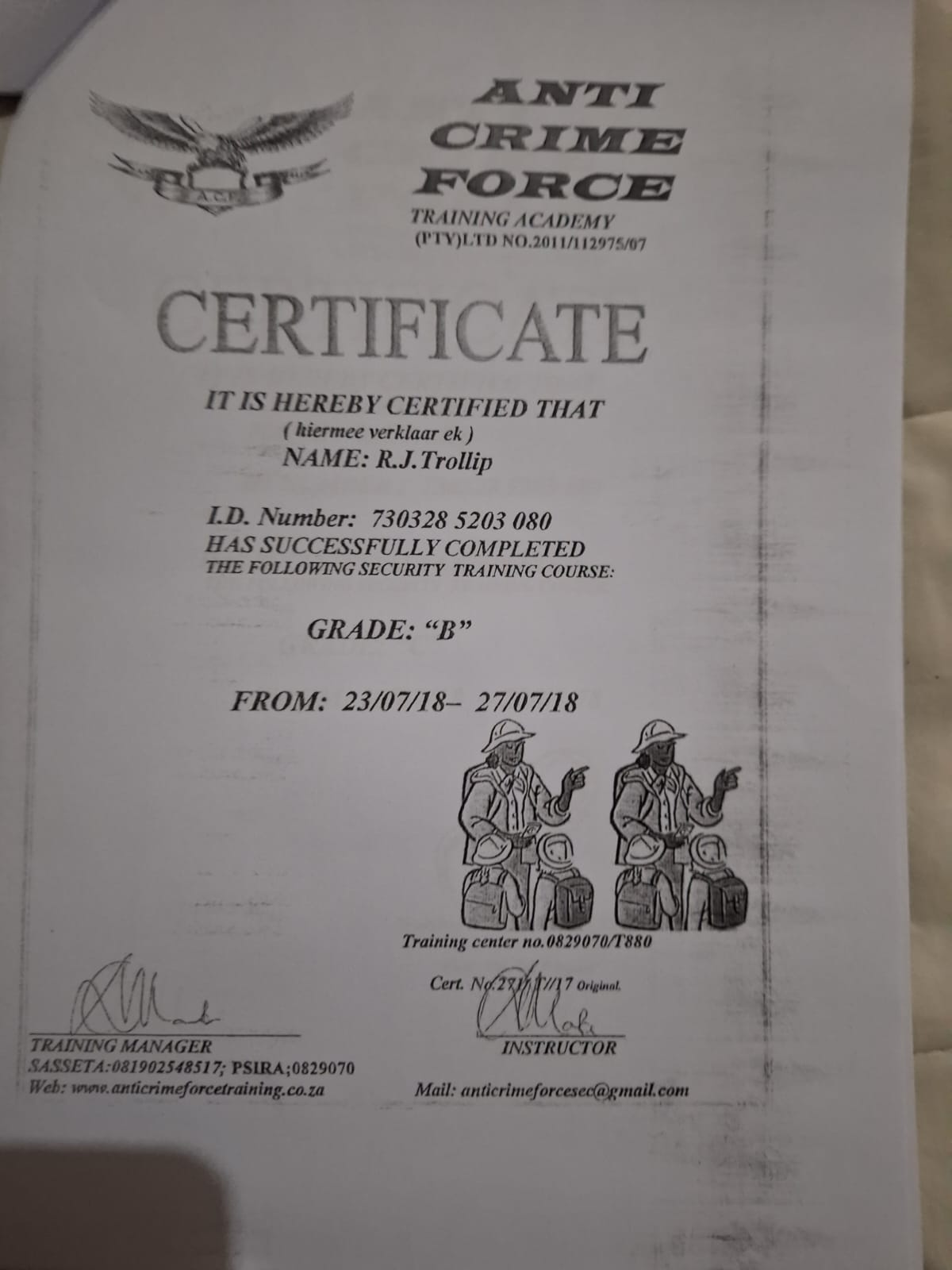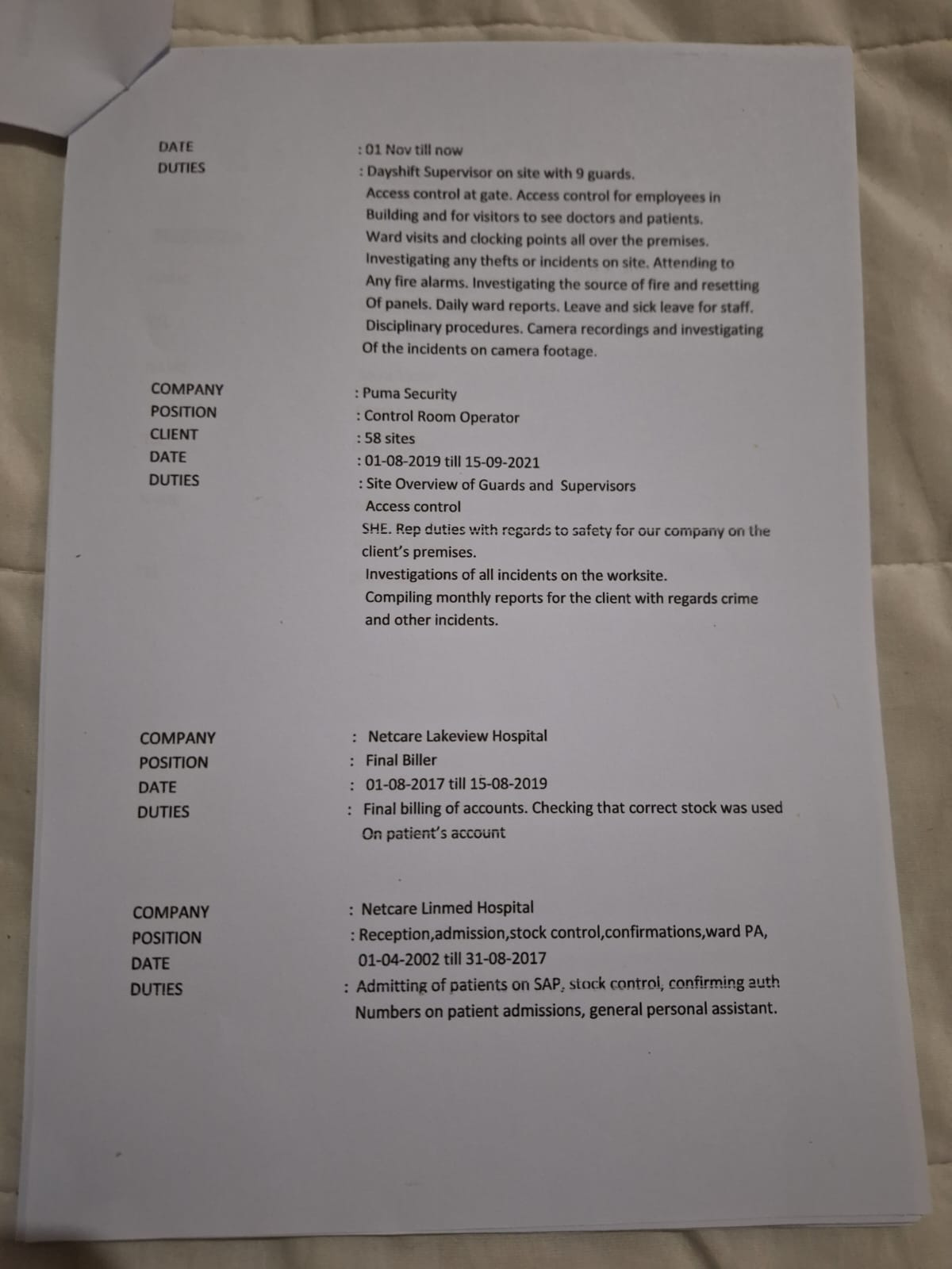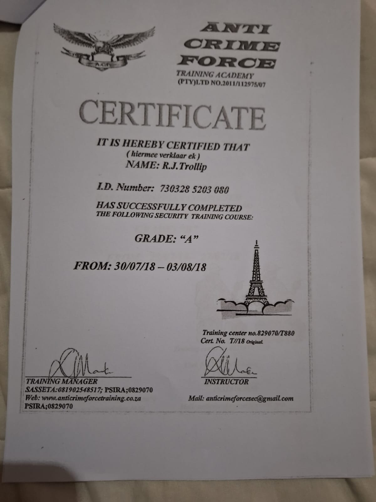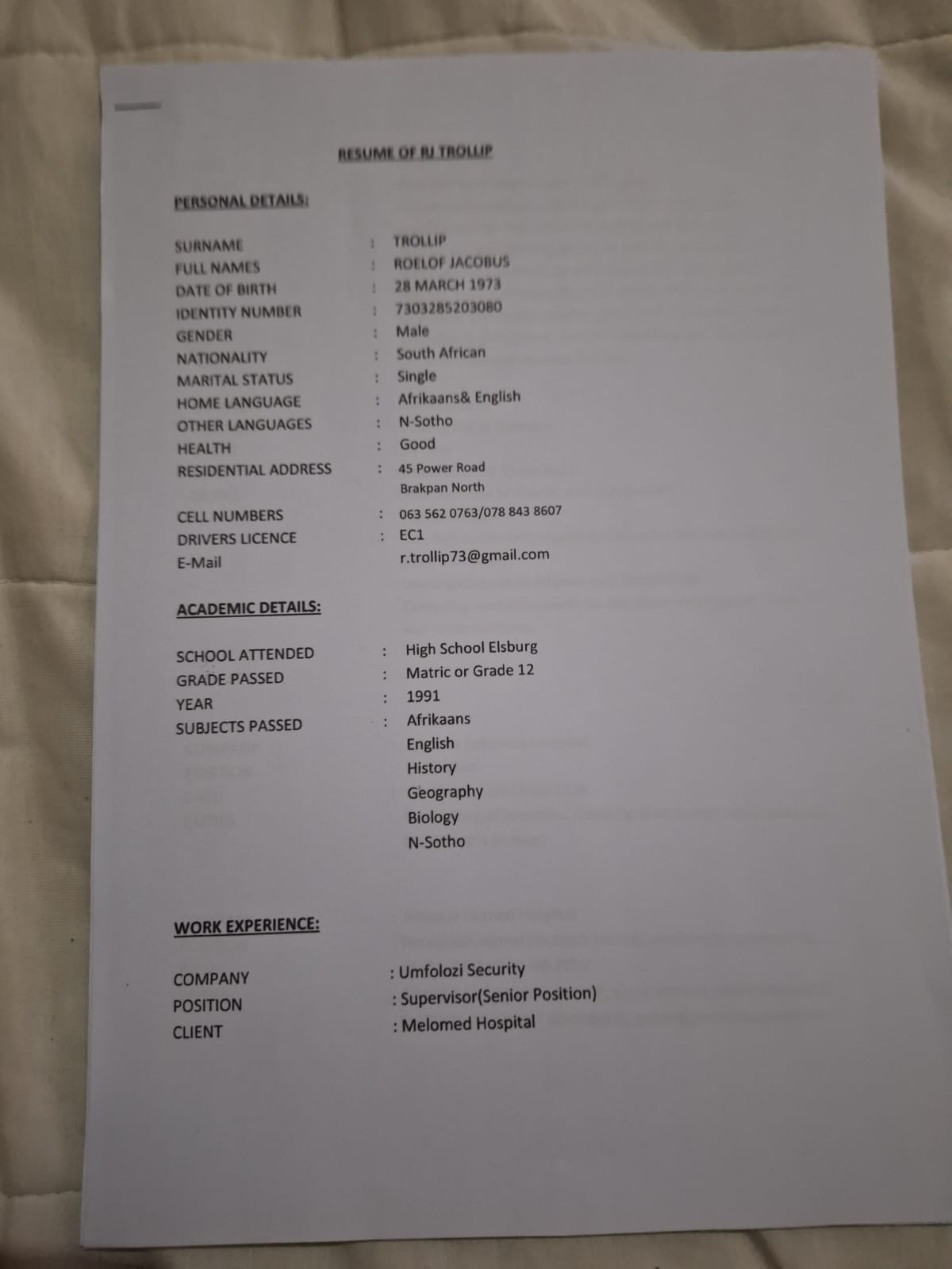 Please place my advert looking for a security job in the east rand. Please 🙏. More details: