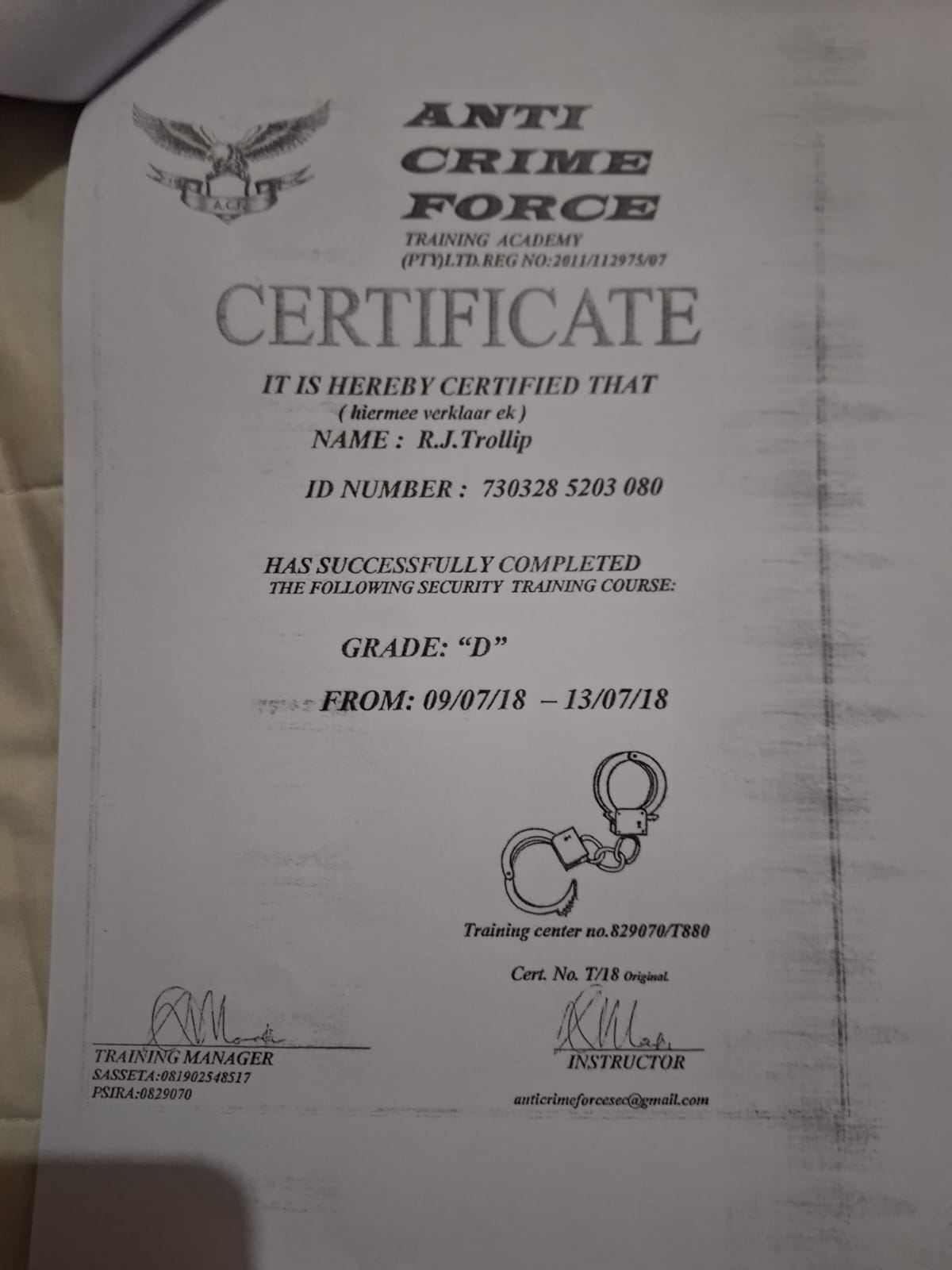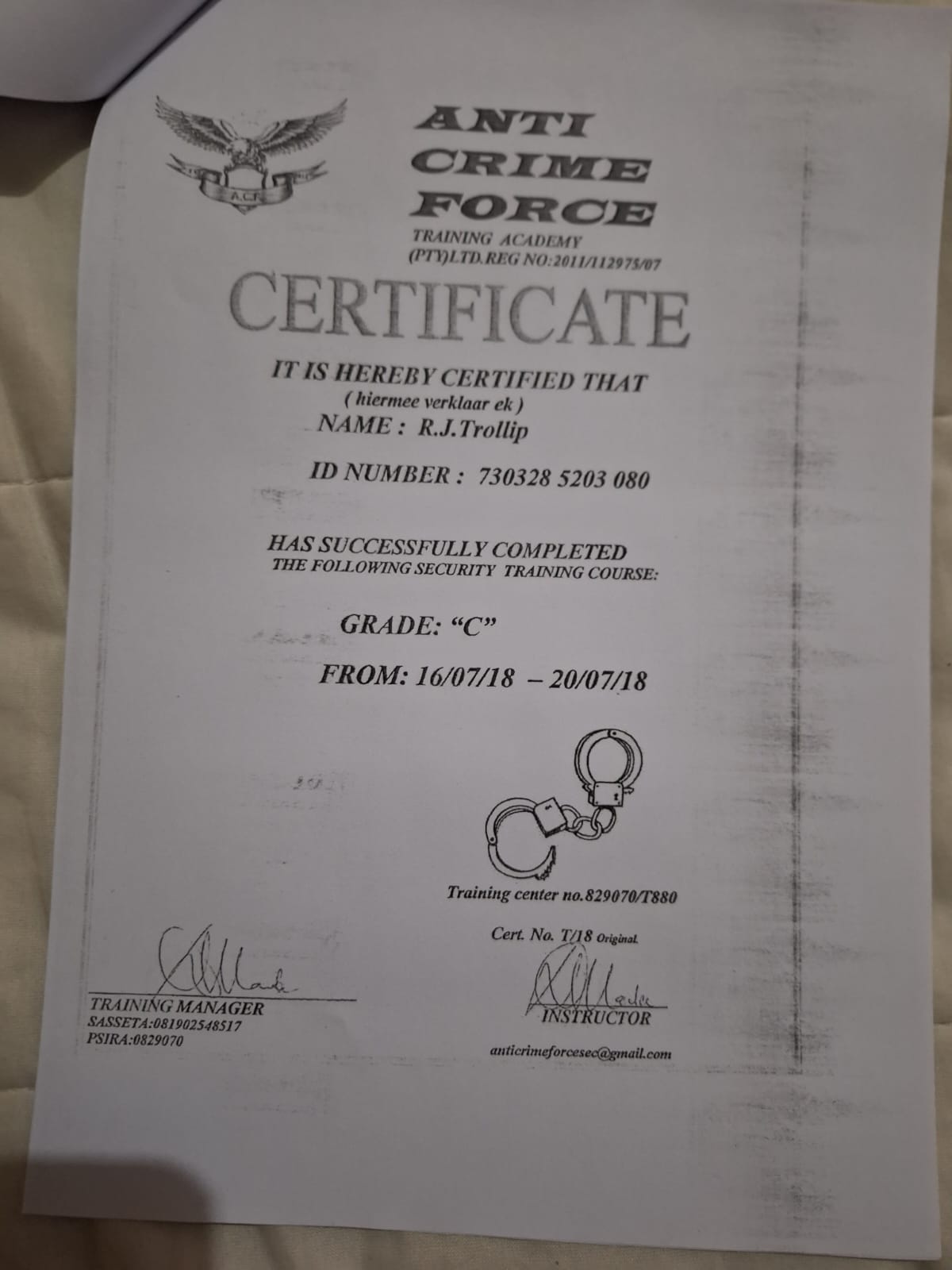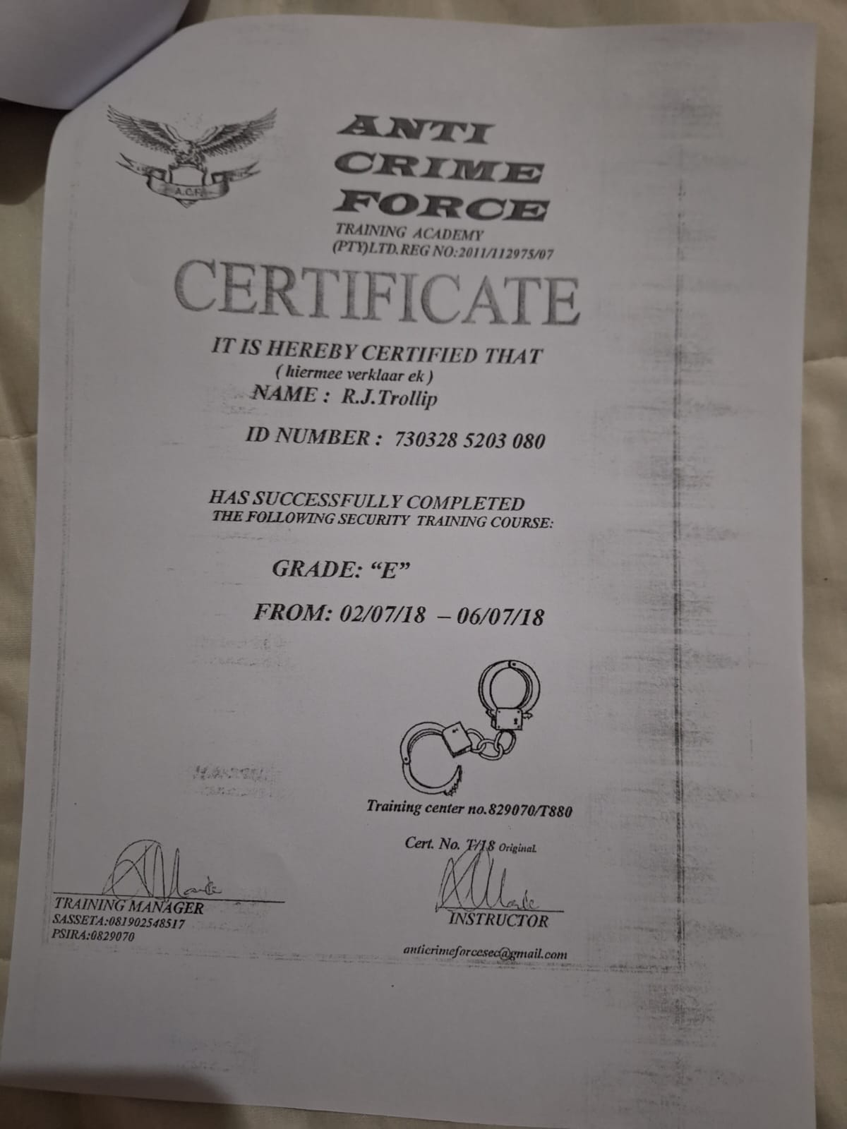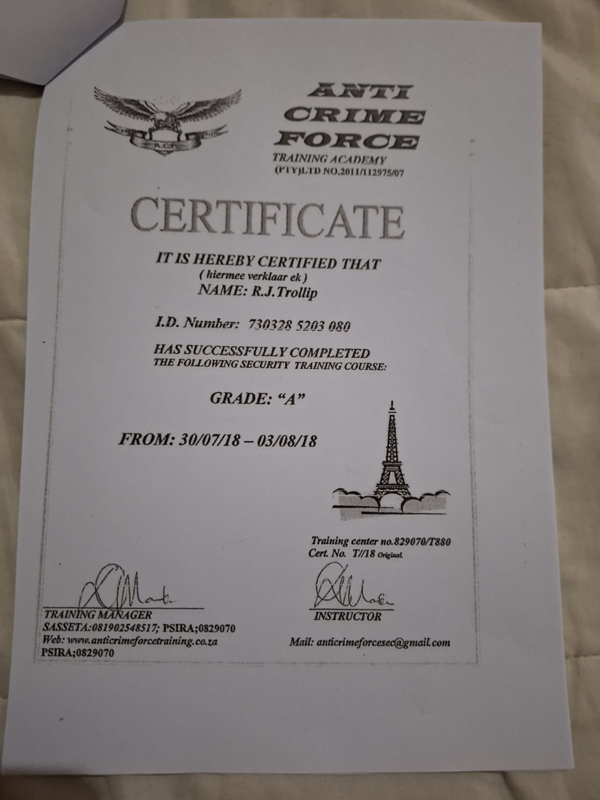 Please place my advert looking for a security job in the east rand. Please 🙏. More details: