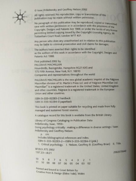 Doing Psychology Critically - Isaac Prilleltensky - Geoffrey Nelson.