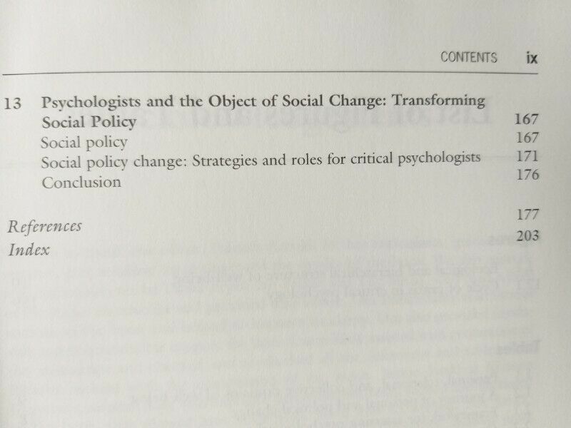 How can psychologists incorporate recent insights about power, values and inequality in their work? What is the role of social justice in the practice of psychology? In this highly readable book, the authors tackle these questions and propose workable answers. This is the first book to translate into action the principles of critical psychology. Using a value-based framework the authors propose guidelines for critical practice in clinical, counseling, educational, health, community and work settings.