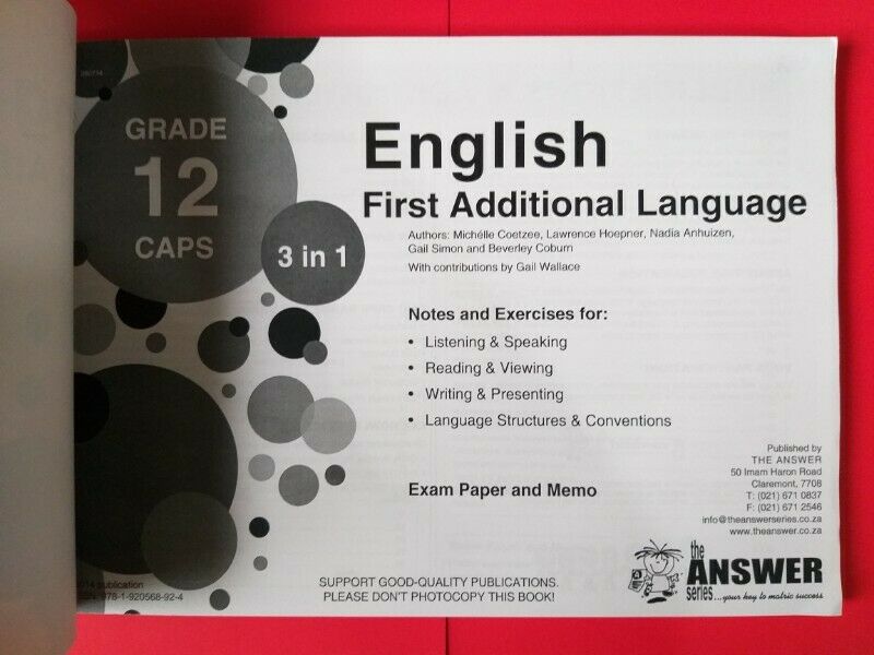 English First Additional Language - Grade 12 - CAPS - 3 in 1 - The Answer Series - Michelle Coetzee.