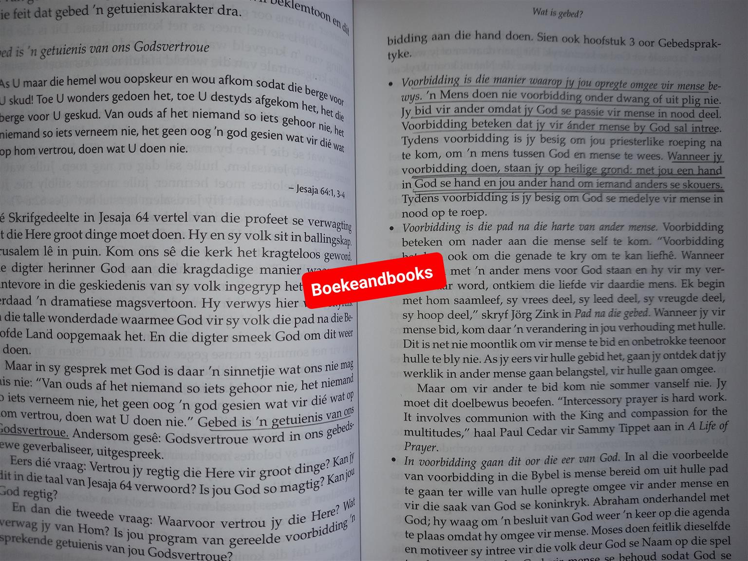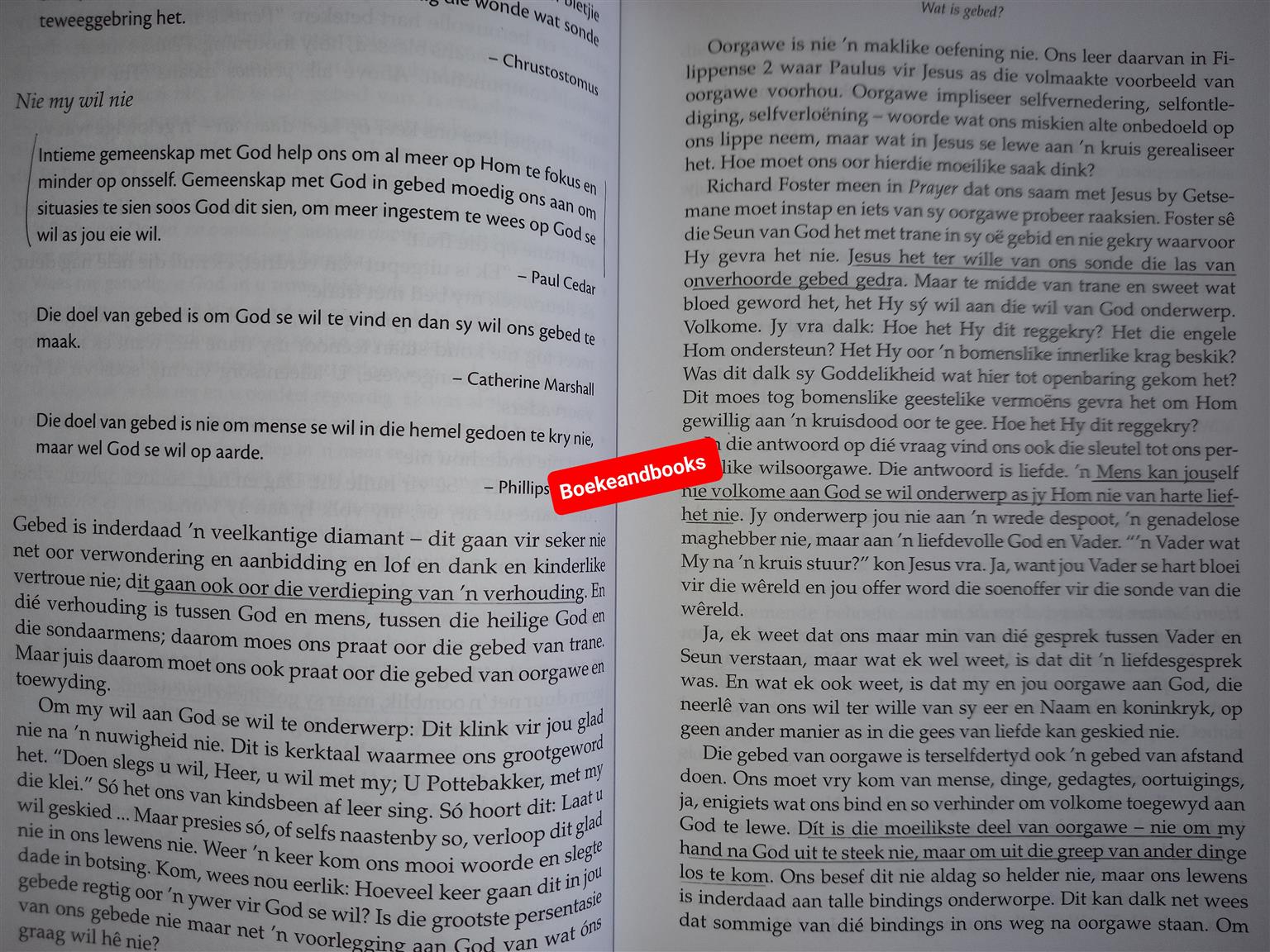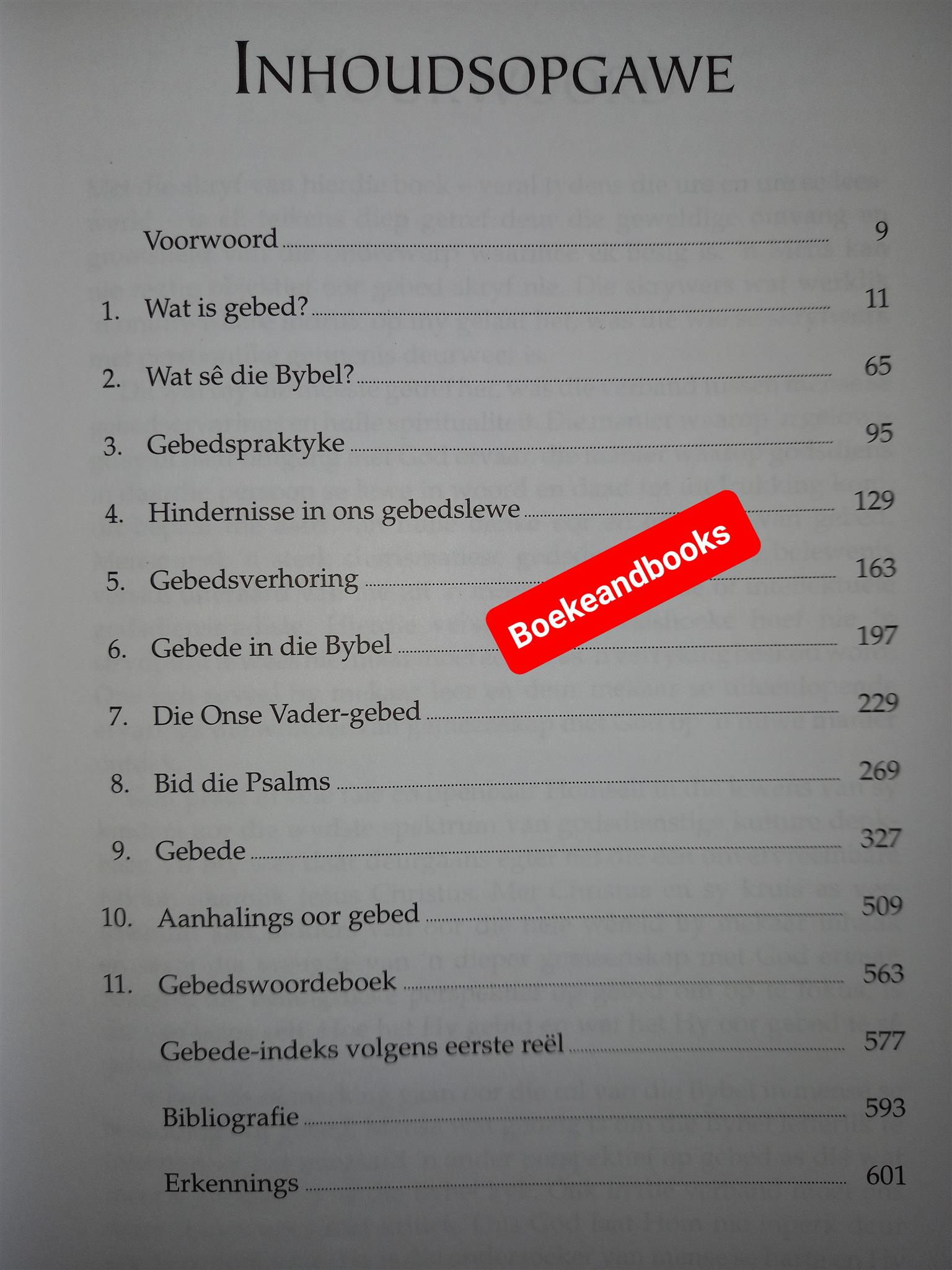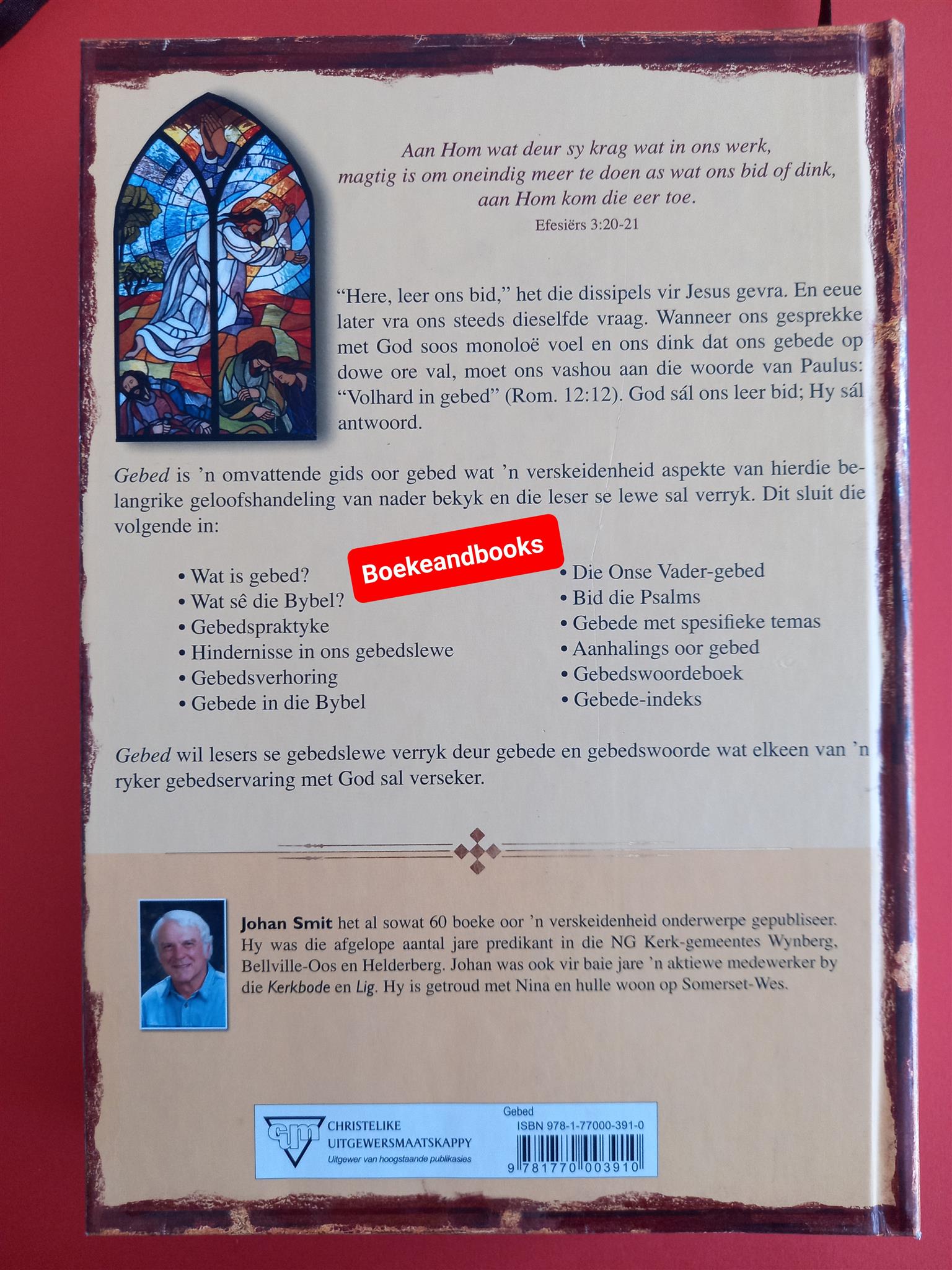 Gebed is n omvatttende gids oor gebed wat n verskeidenheid aspekte van hierdie belangrike geloofshandeling van nader bekyk en die leser se lewe sal verryk. Dit sluit die volgende in: