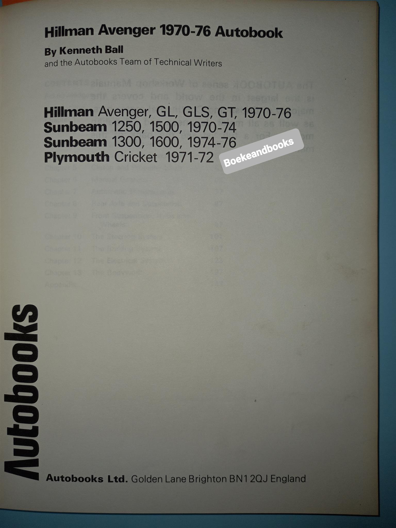 Hillman Avenger - 1970-76 - Autobook - 820 - Kenneth Ball - Owners Workshop Manual.