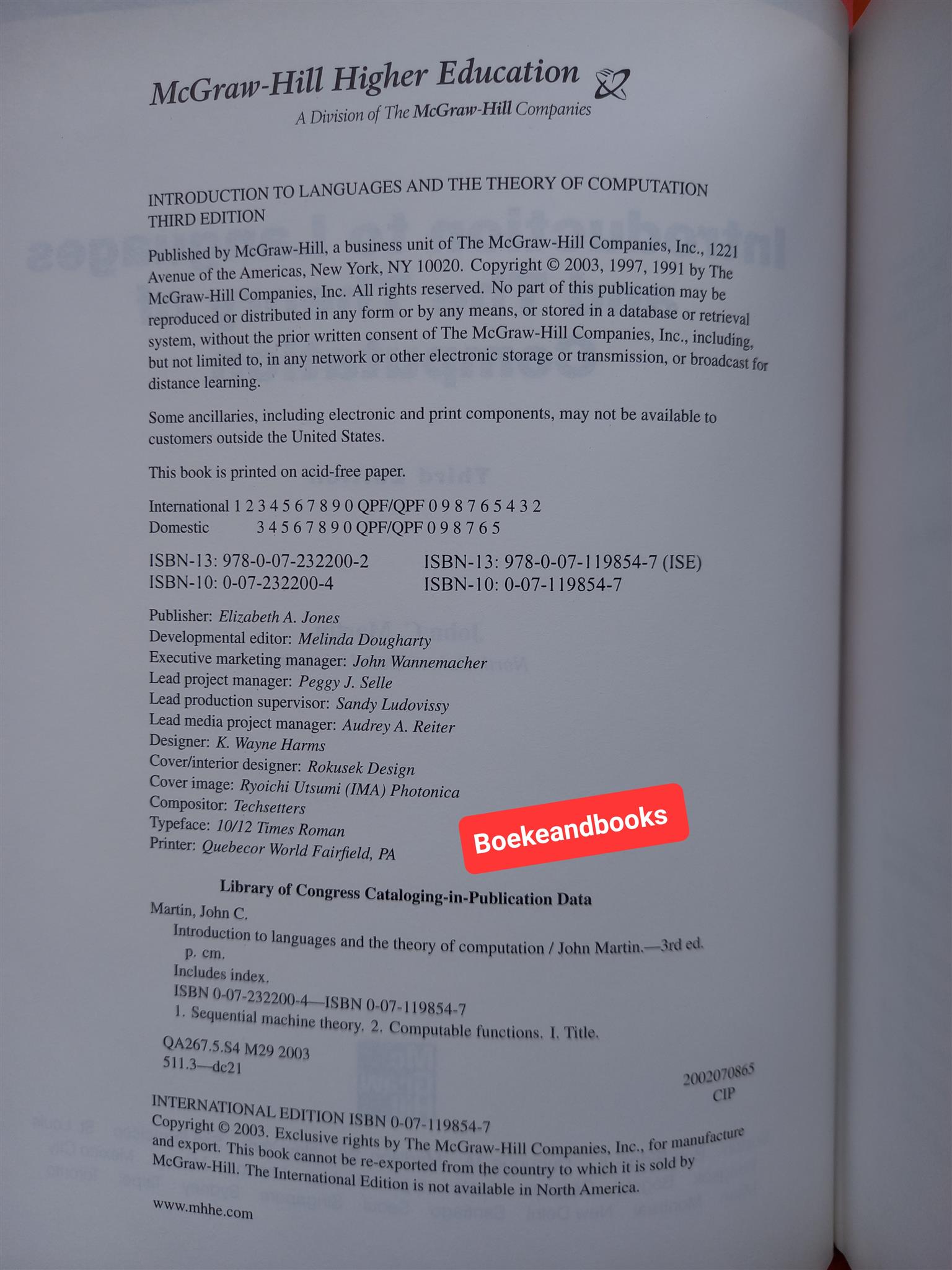Introduction To Languages And The Theory Of Computation – John Martin – Third Edition.