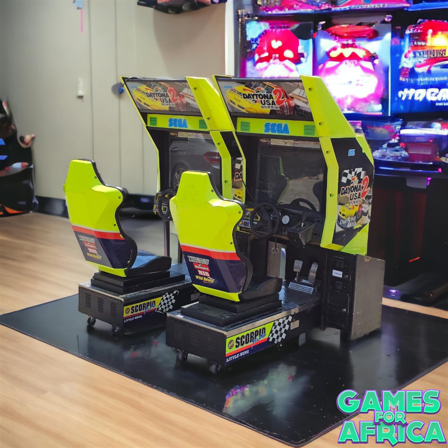 R49 995 Daytona USA 2 racing car Twin Battle on the edge video racing arcade games It is an arcade racing game released by Sega in 1998 as a follow-up to the extremely successful Daytona USA. The game featured vastly superior graphics, utilizing the Sega Model 3 hardware.