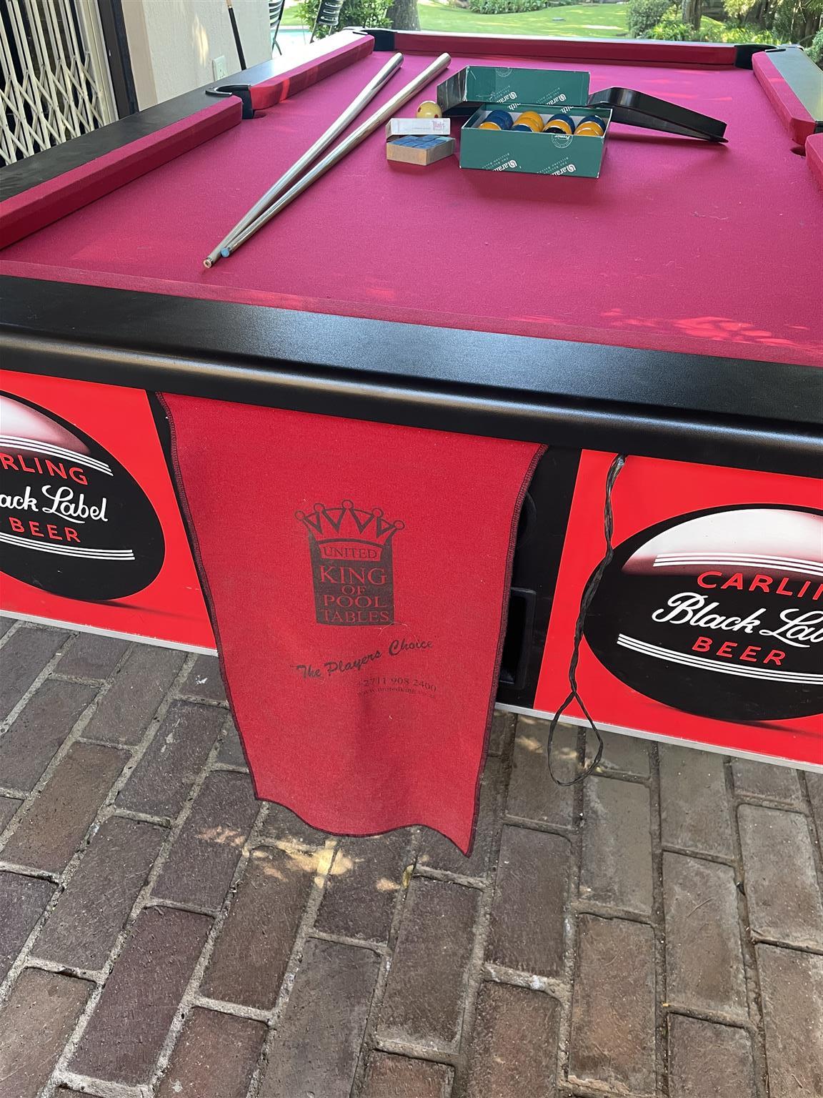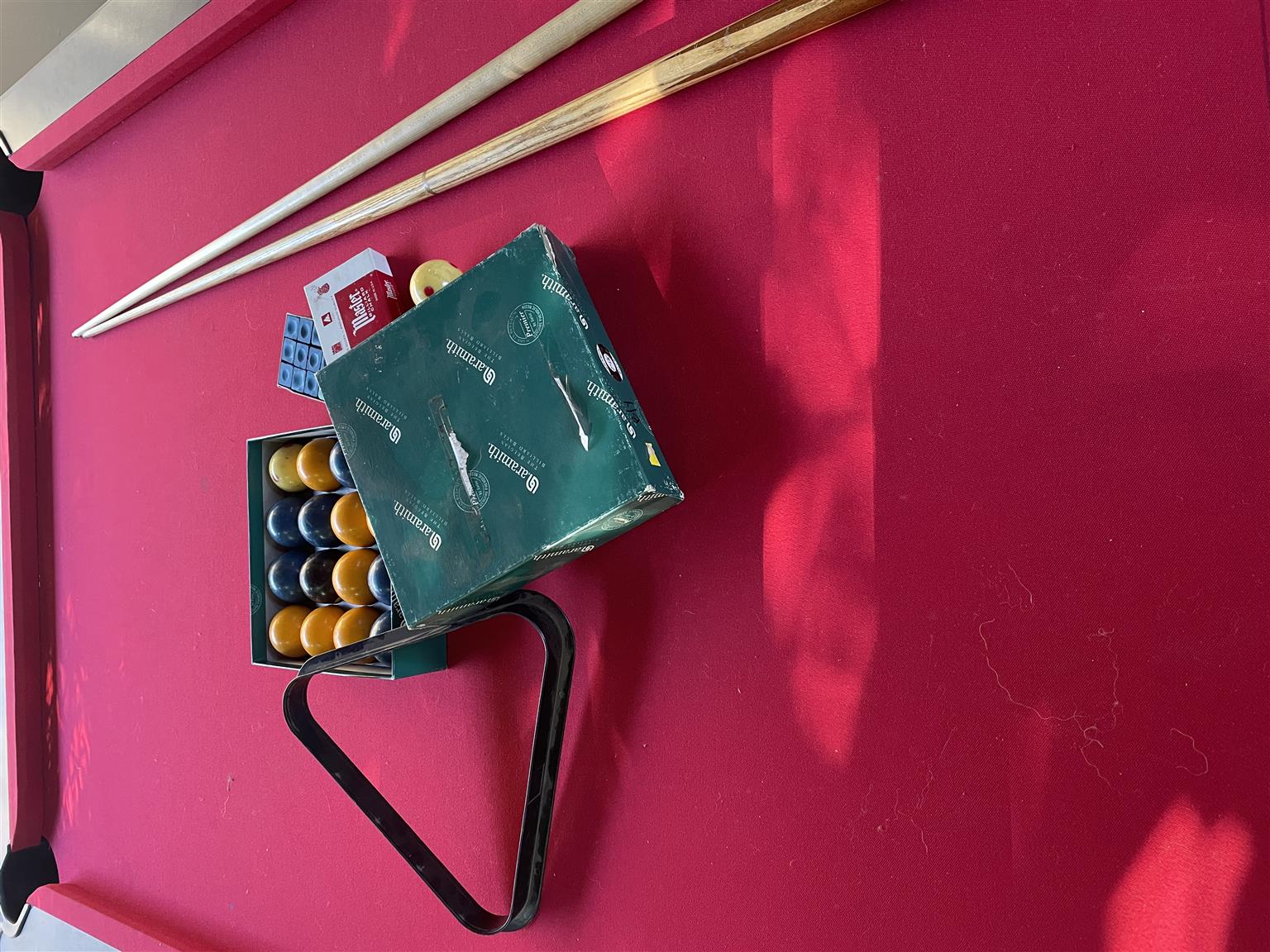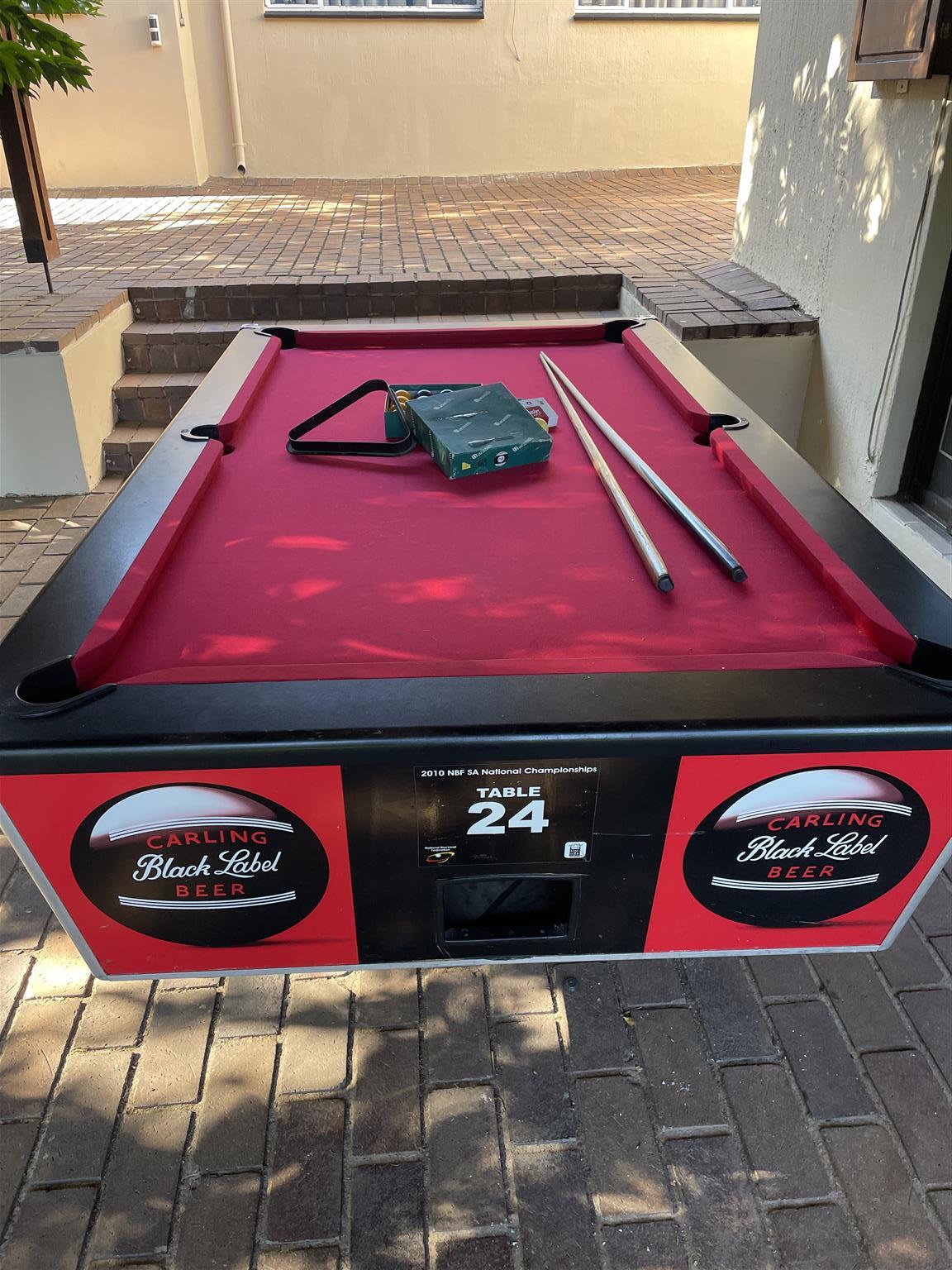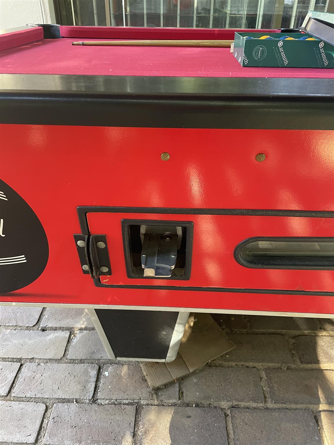 United King SA Championship table. Competition grade felt. coin operated with cues, triangle amarith ball set and chalk