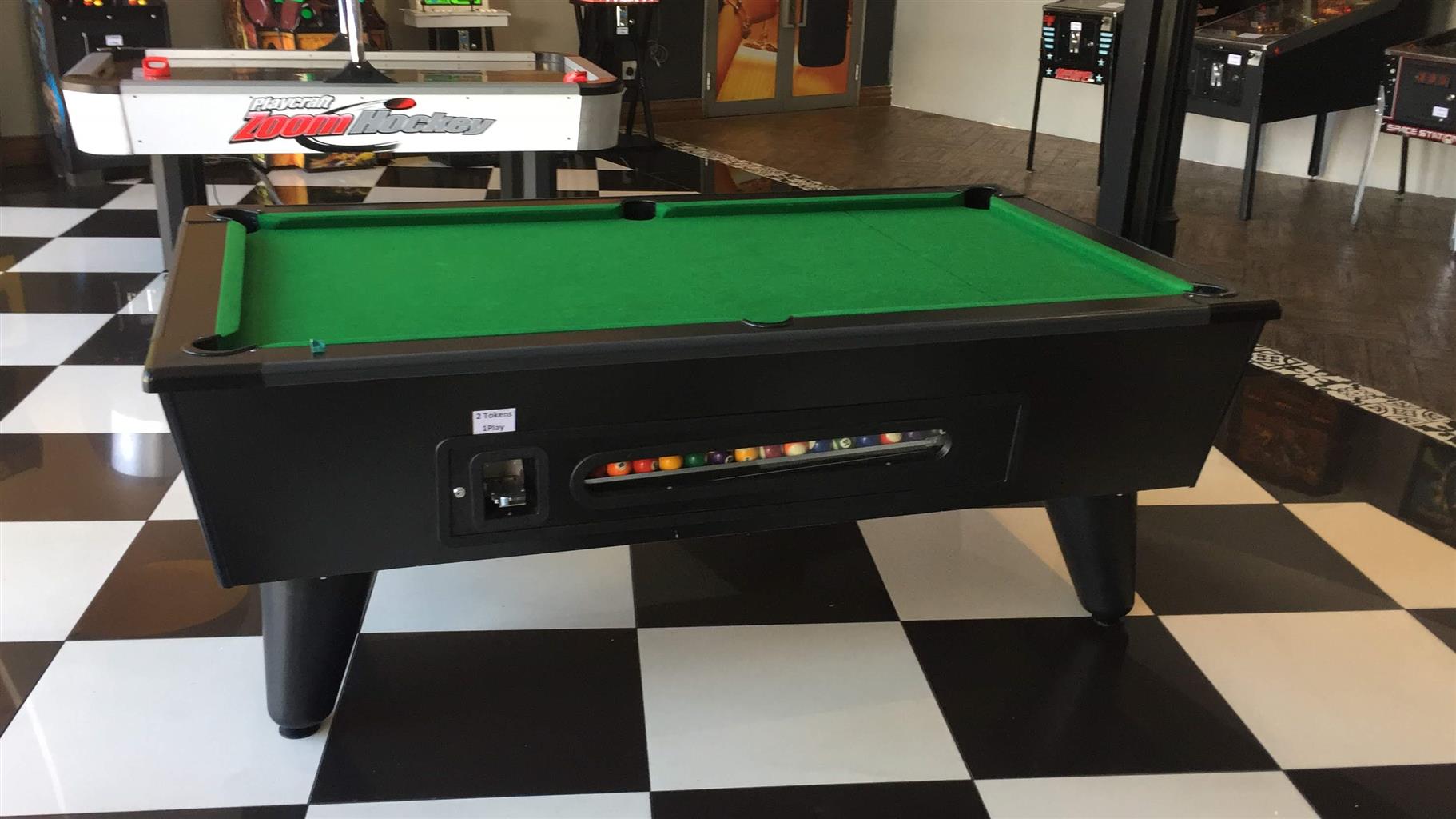 Selling NEW slate top pool tables, with coin mechanism, comeplete with accessories:
