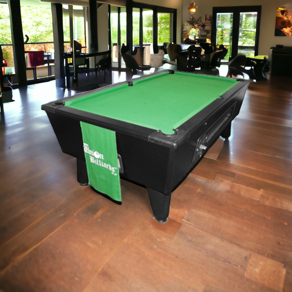 The Elite Coin Operated Pool Table Includes a 20mm slate bed fitted with either speed cloth or standard felt.
