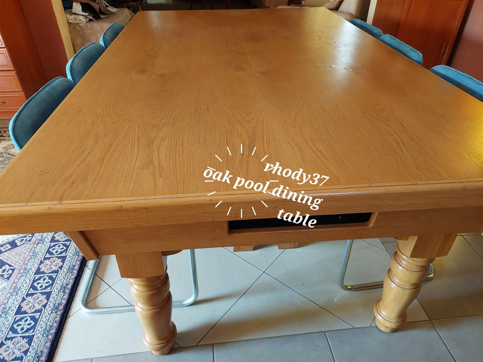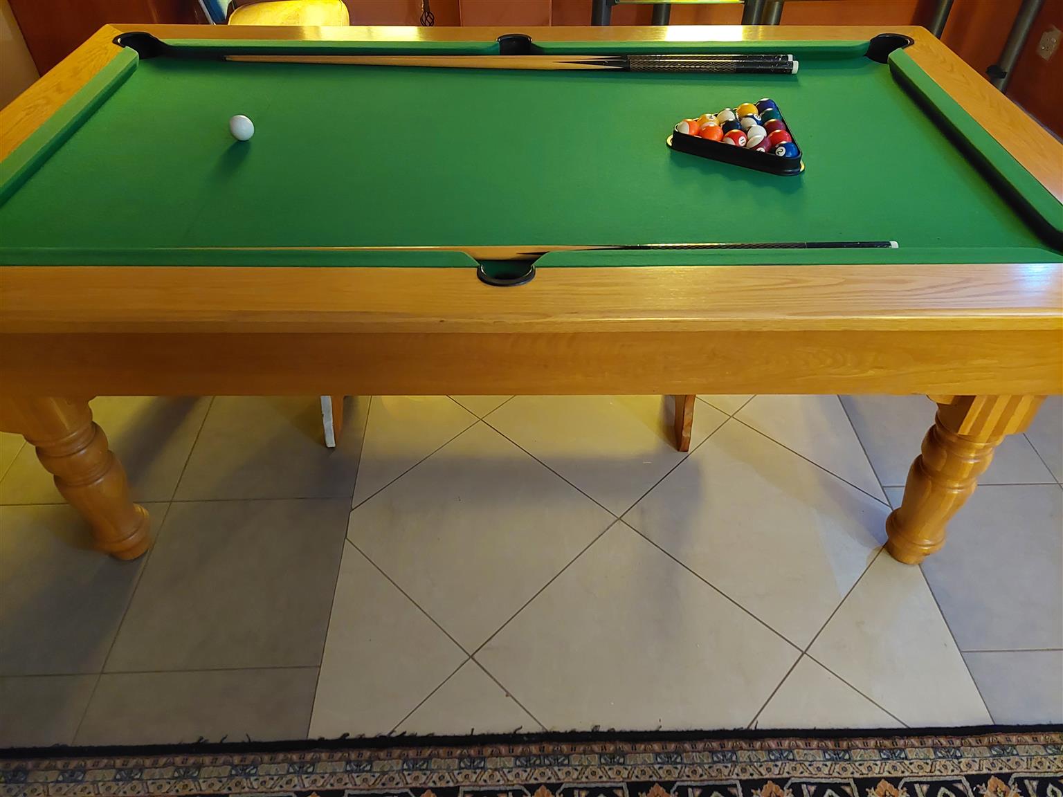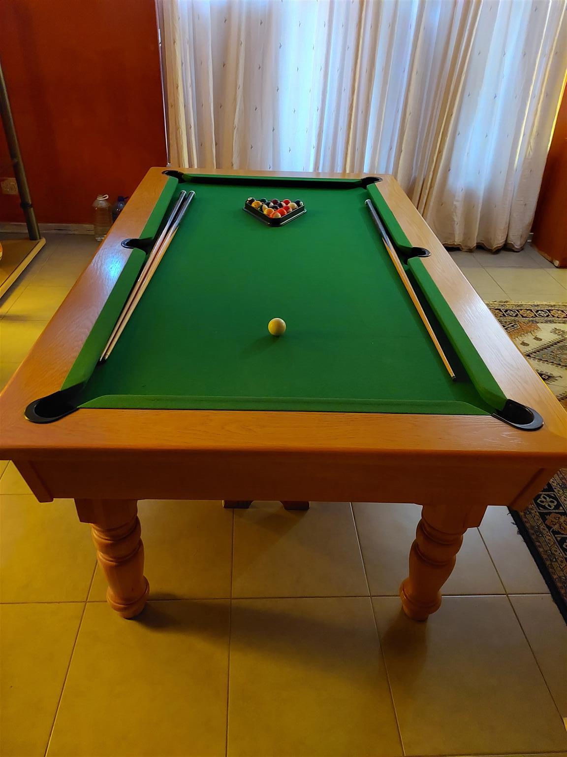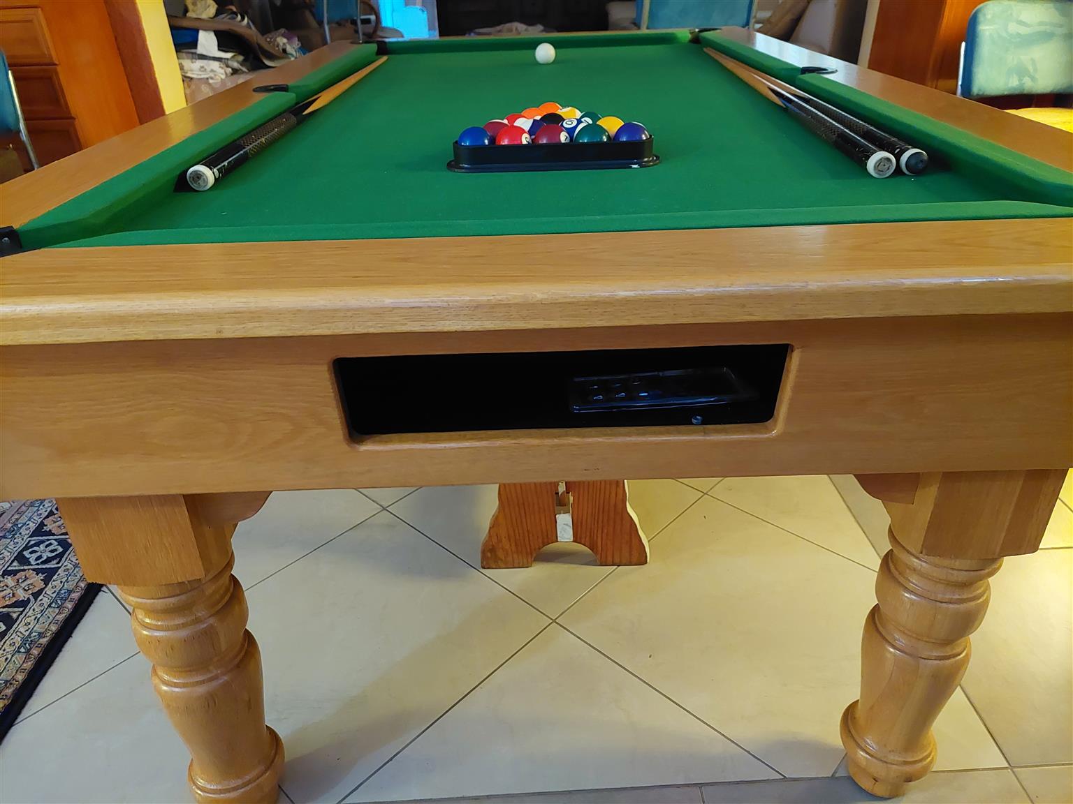 OAK POOL TABLE AND DINING TABLE. More details:
