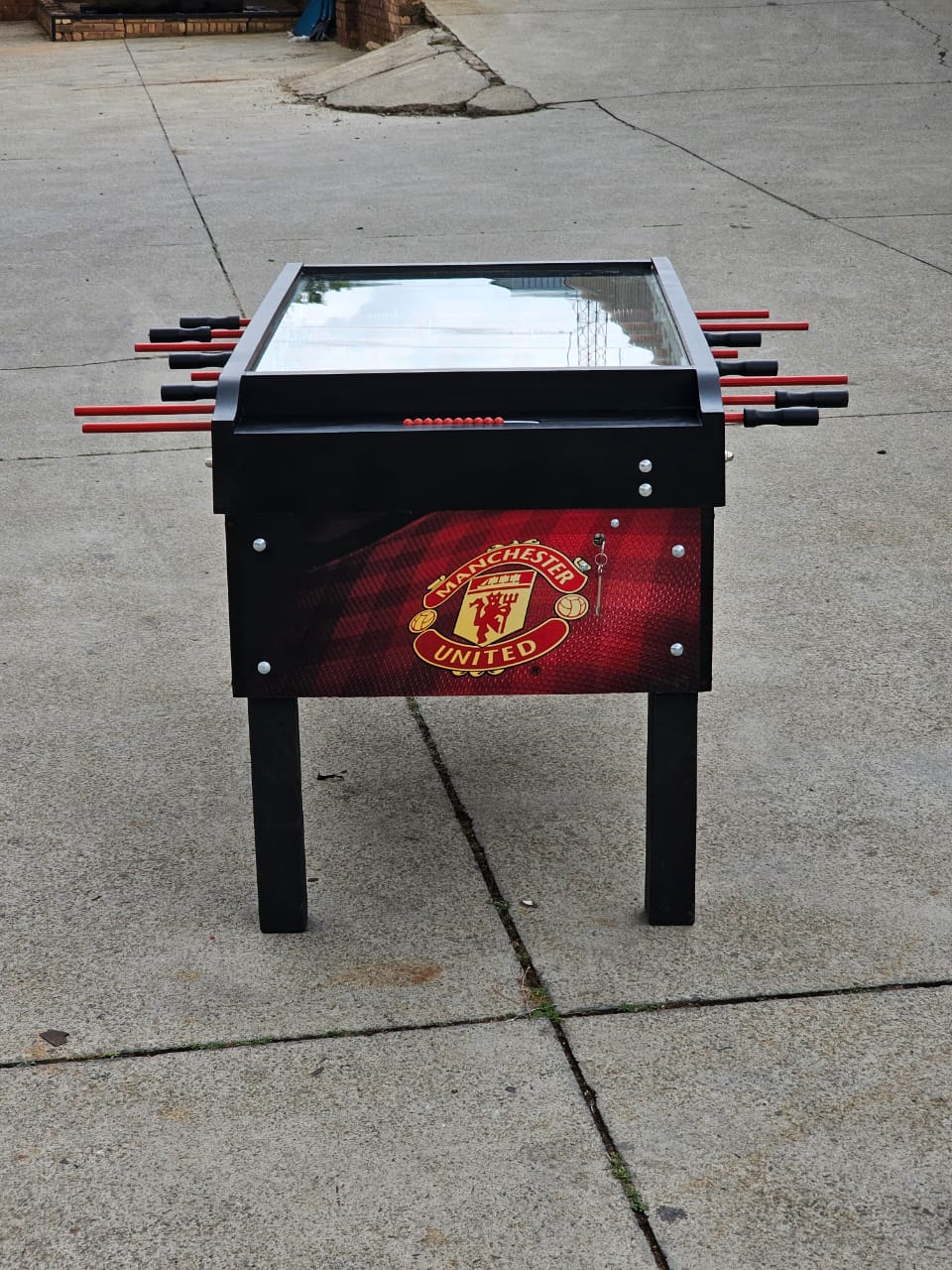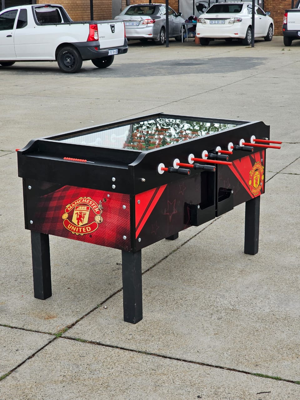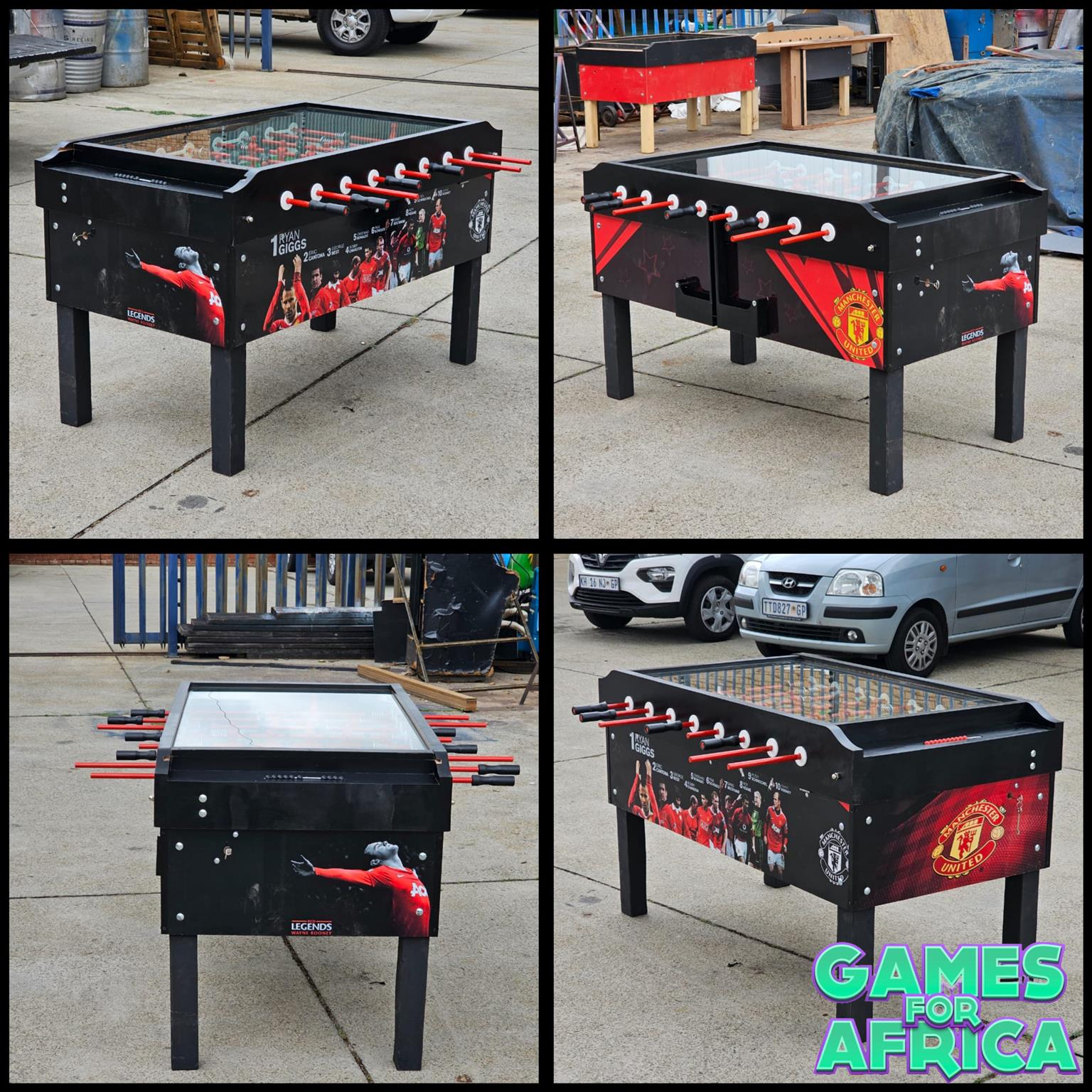 R 12,000 Games for Africa design or your print ready design printed directly onto the wood prior to assembly makes branding easy creates a long term strong and scratch proof Foosball table with glass top www.gamesforafrica.net