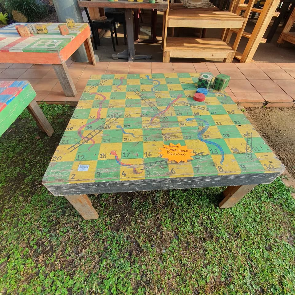 Game board table for R650.00 each. Dimensions: 94cm X 94cm X 46cm GARDEN MARKET PLACE. 1 Gardens Road, HILLCREST. Contact details: Whatsapp no:. Telephone no:.