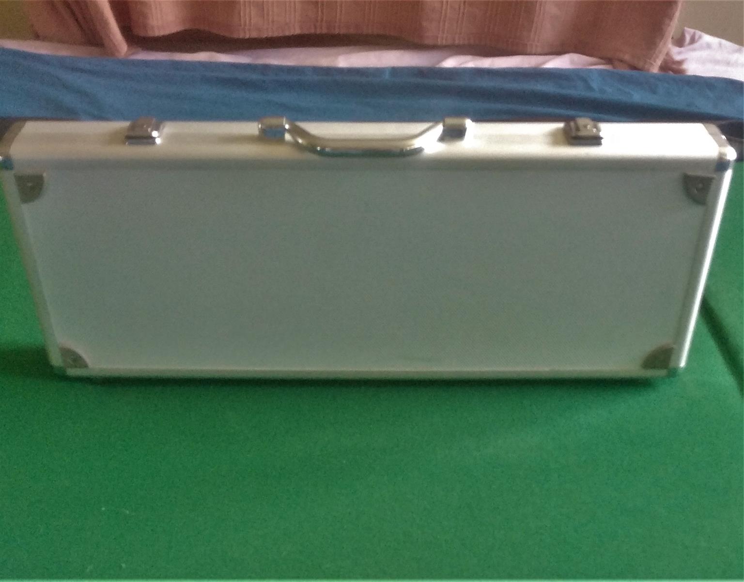 Includes ; 500 Chips, 2 Decks of playing Cards, Lockable Carry Case (Keys included)
