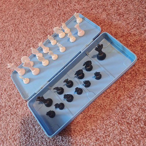 Skaak, miniature set, 4 black missing.