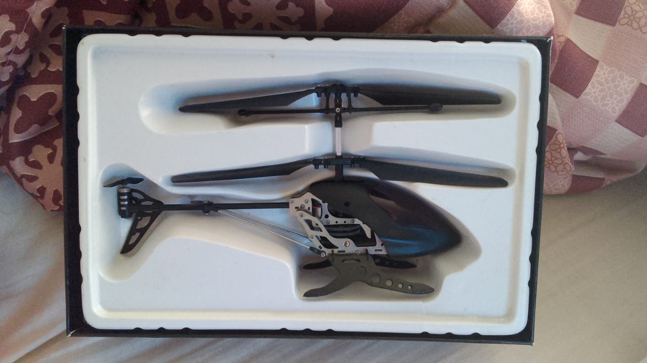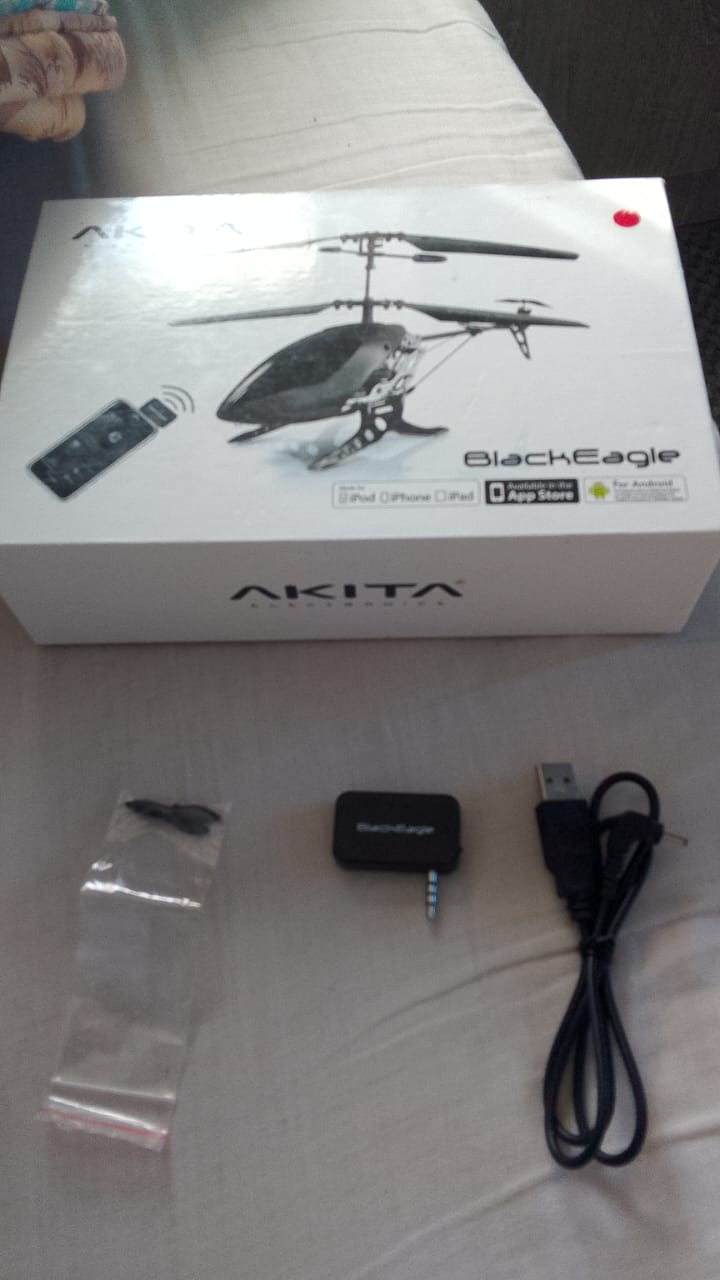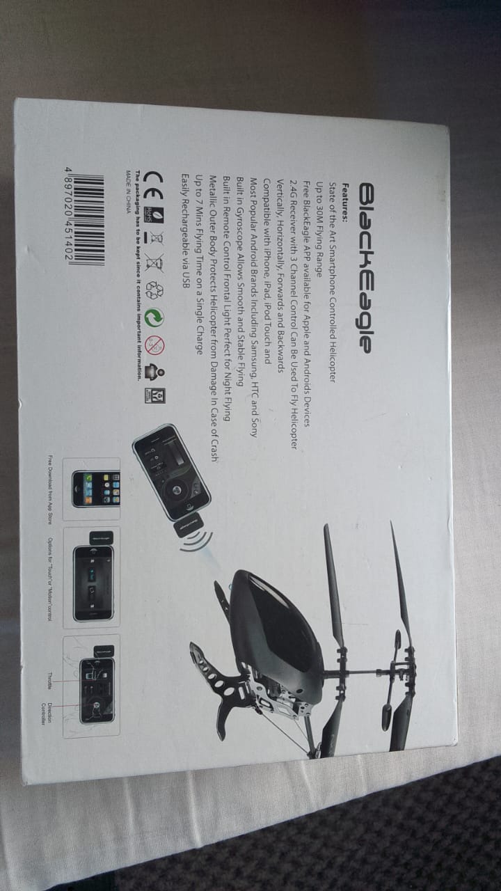 RC helicopter , Flying time : 7 mins , charge via usb , build in gyroscope , compatible with : iPhone , iPad , iPad touch , android , charging block needs tlc , sell as is