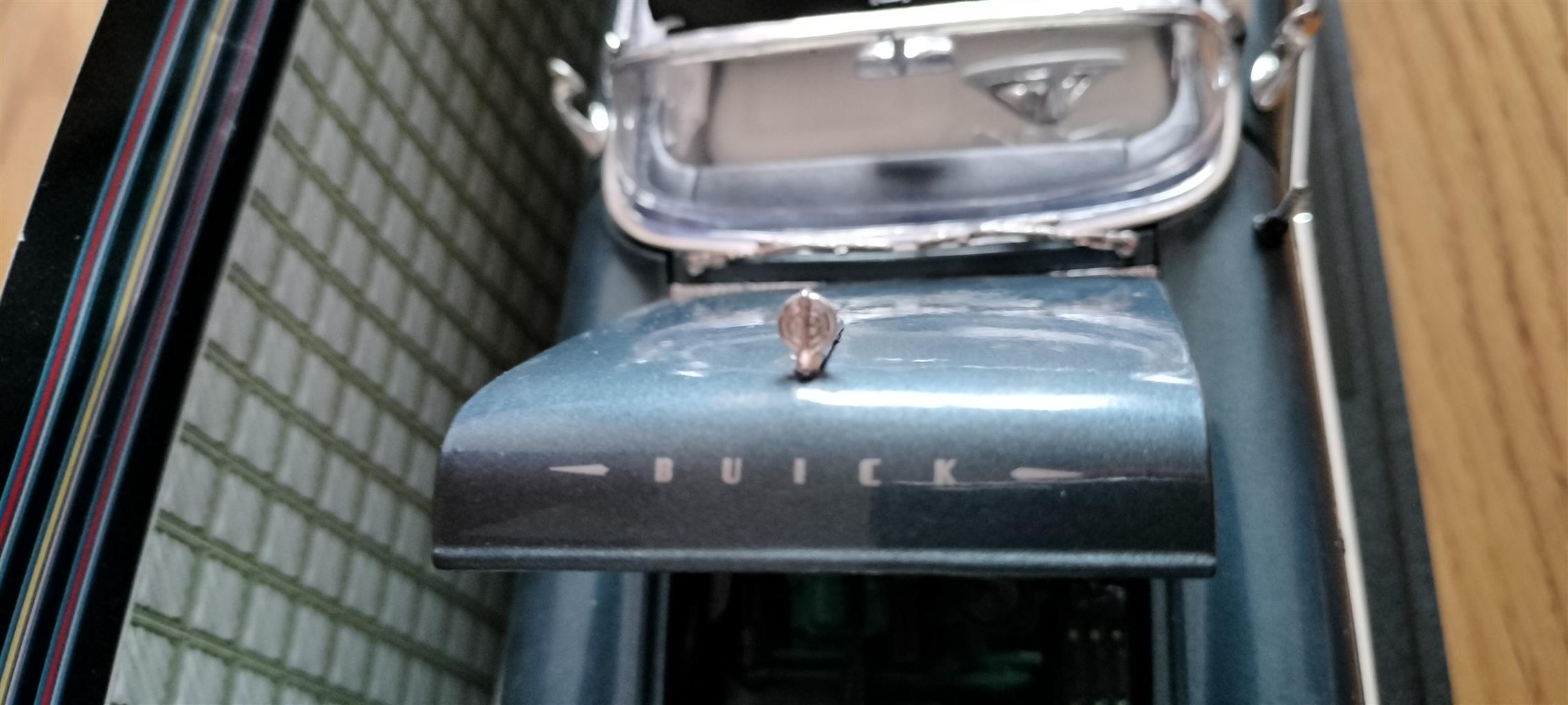 This model car is still in mint condition. Hood, doors and trunk can be opened together with a working steering. Exceptional attention to details on the mags, interior and engine.