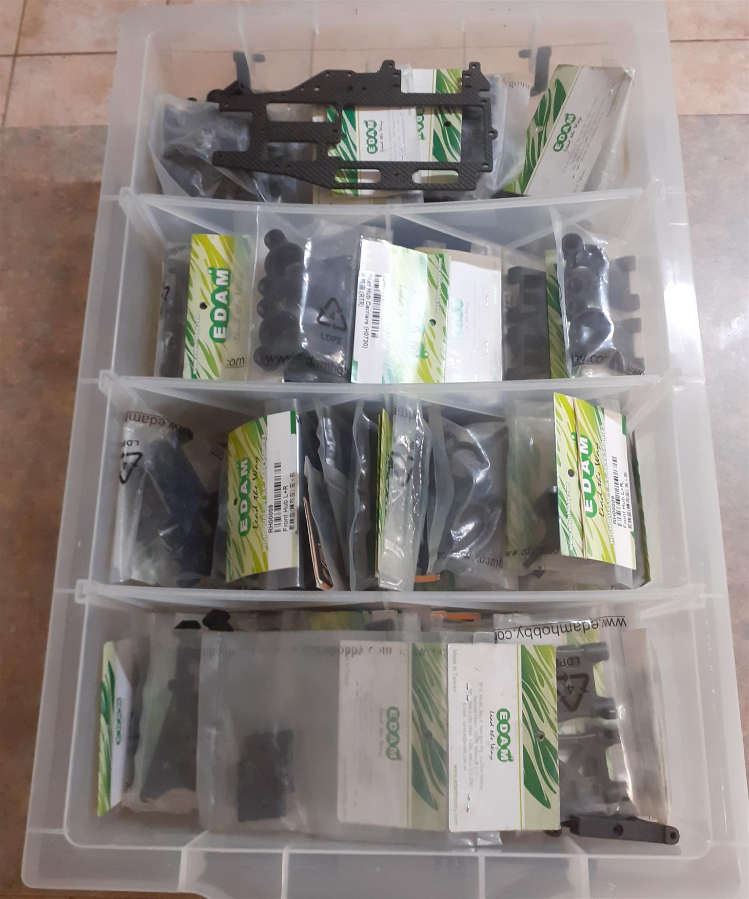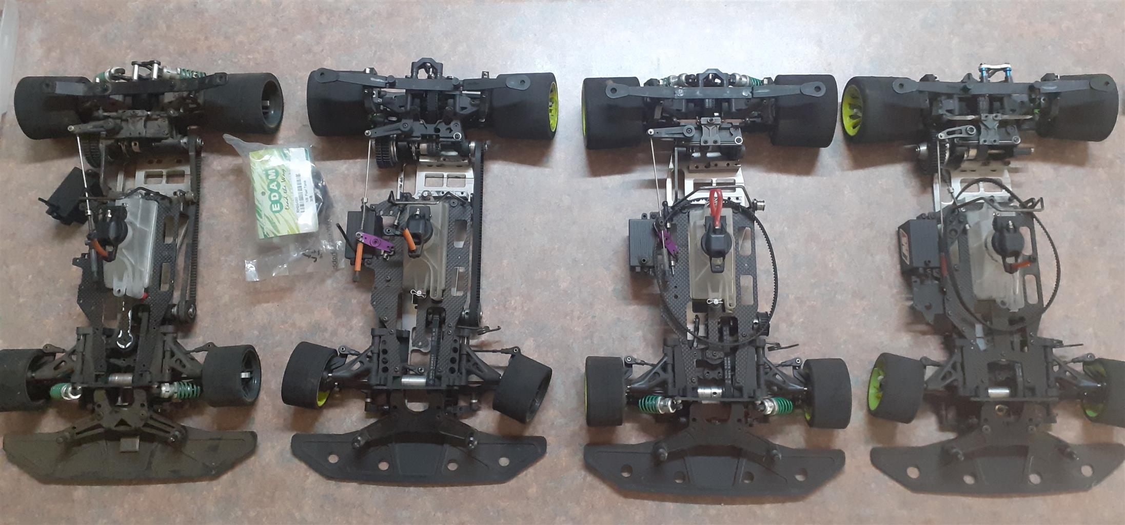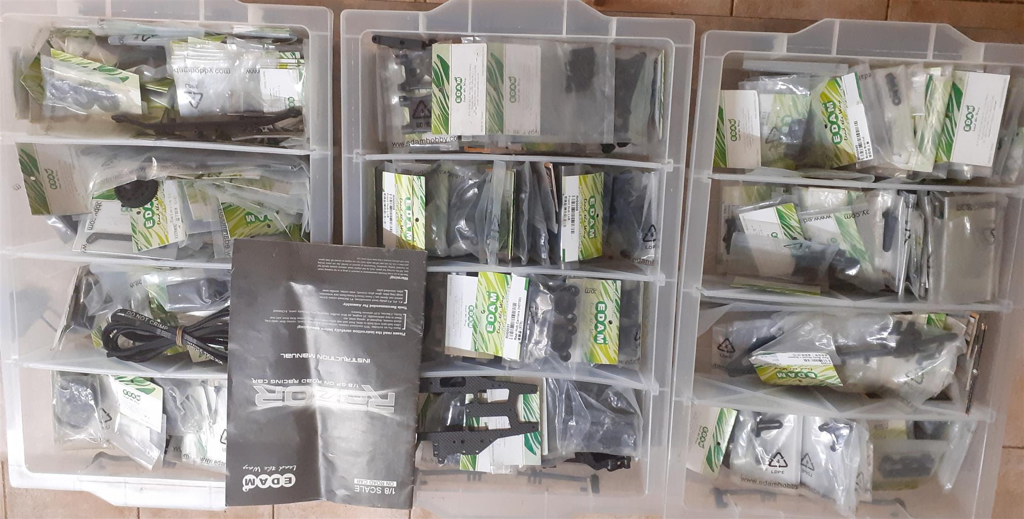 There are 4 built Edam 1/8th on road radio control cars with 3 boxes of brand new spares and accessories