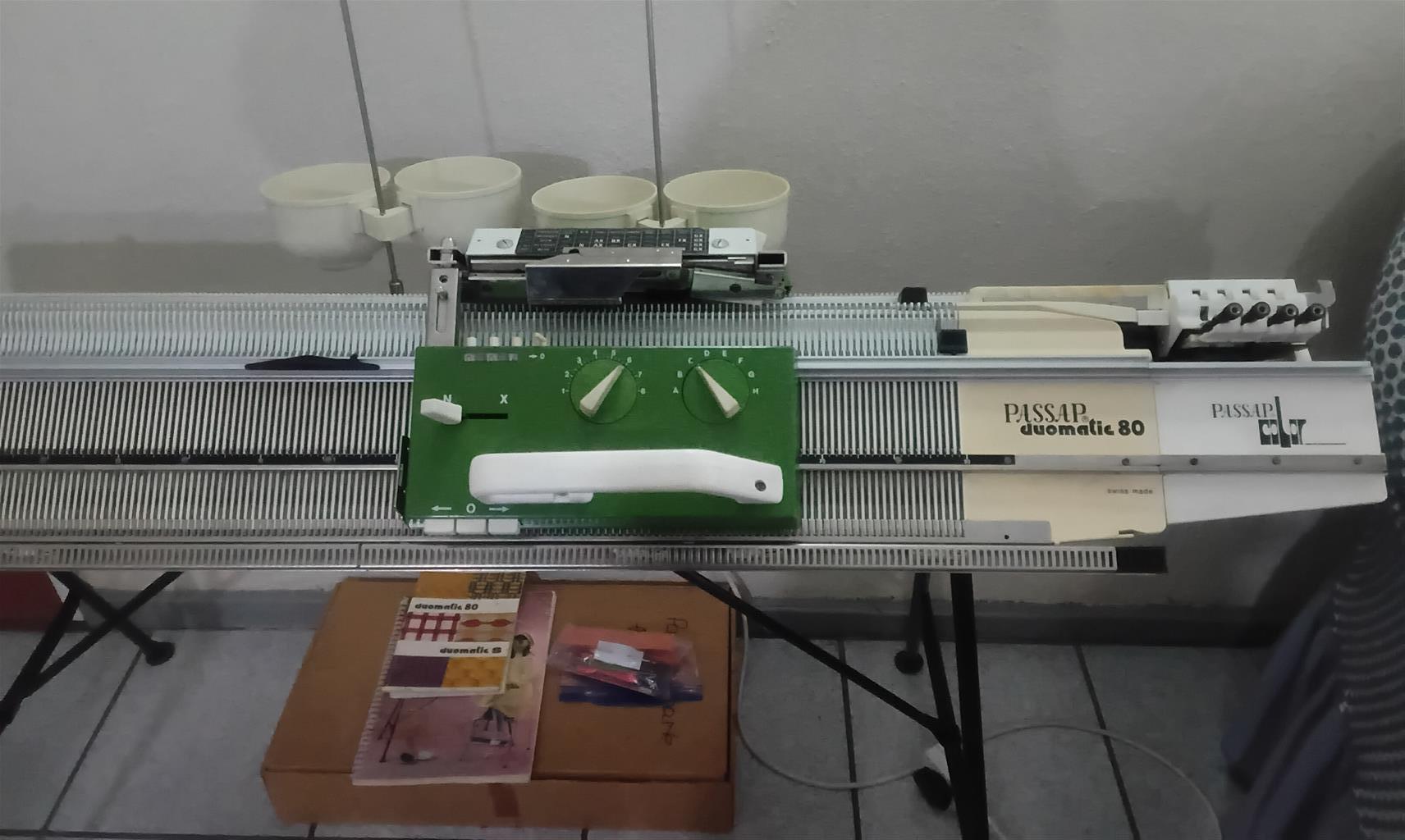Passap Duomatic 80 knitting machine complete with Deco ,cards , 4 colour changer, U 100 , books and accessories. Serviced and in good condition.