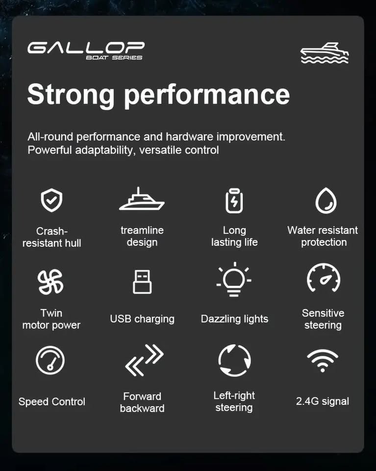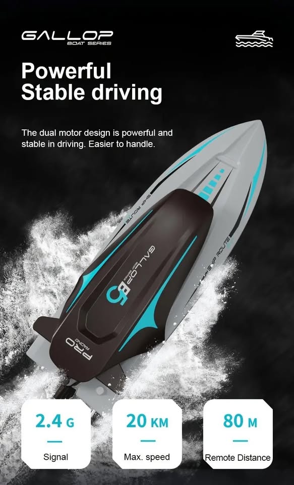 RC Boat With Dual Motors And 4-Channel, 2.4G High Speed 25km/h Remote Control Airship For Pools And Lakes, Ship Details Power Mode: Battery Powered Operating Voltage: ≤36V Battery Properties: Rechargeable Battery Rechargeable Battery: Lithium Battery-Polymer Wireless Property: Including 2.4G/3G/4G/5G and other functions Applicable Age Group: 14+ Material: Plastic Special Features: Weather Resistant Control Method: Remote Control Brand: Funwins Item ID: RK31328