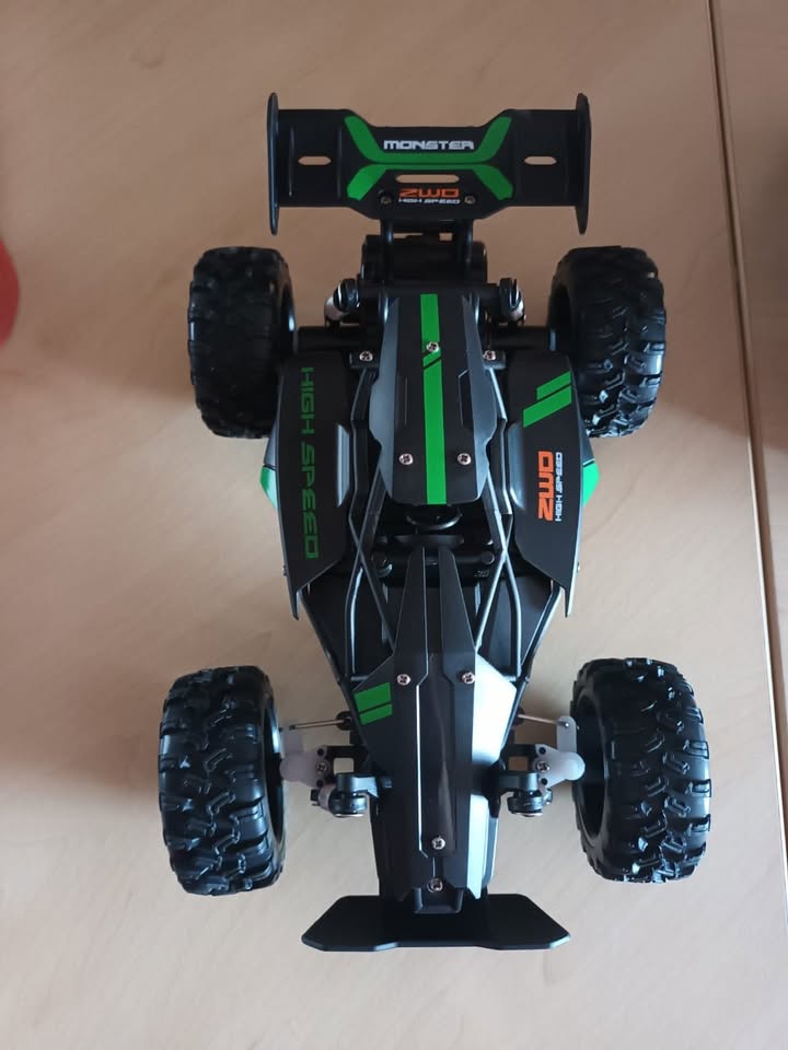 Description: Material: Plastic and metal Scale:1/18 Color: Blue or Green Power System ESC: Brushed Charge: Included Control: Radio control Transmitter Frequency: 2.4G Channel: 2.4Ghz 4CH Battery: Li 3.7V 500Mah Transmitter battery:2x1.5AA (not included) Other Using time:6-10min Charging time:40 min Control distance:50m Max speed: 25km/h Dimension Size:23*14.5*11 CM Features: - The car ESC is partially waterproof which can support to walk in the shallow water - 2.4G technology can support the car to play high speed game at the same time as well as drift. - Rechargeable Battery and long time to use. - Shock-proof system, front and rear bumpers. - Regardless of shocks and bumps caused by steep inclines and rugged can run perfectly, such as mud, grass, paving, or Off Road. - Durable plastic body shell make car to soak up the shocks and bumps effectively - Easy to handle at high speed. - It delivers incredible climbing performances when crawling over rocks and tackling steep inclines. - Stable racing car in a long time which keep it driving even when the going gets rough. - 2.4GHZ RC Transmitter Supporting, Four-Wheel Independent Suspension System Driving all time. - Professional 2WD chassis true 4-wheel shaft drive system & Super elastic rubber tires are special designed for tough environments. - Functions are easy to control, controller functions are forward, backward, left and right. - Great gift for experienced RC enthusiasts or kids. Package Include: 1 x RC Car 1 x Remote Controller 1 x Battery 1 x USB Charger Cable