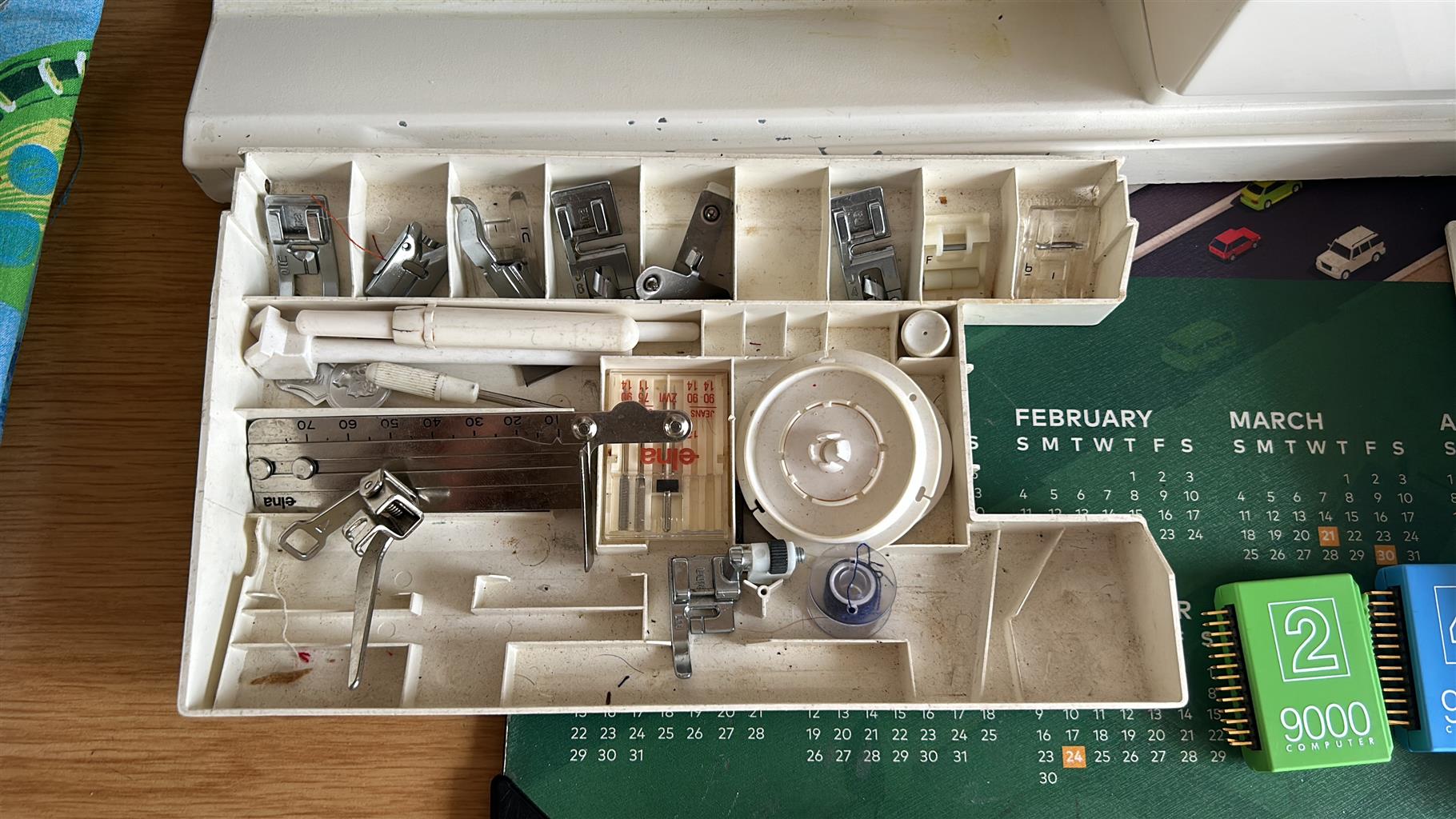 Elna Diva with foot control power cord & accessories.Machine has just been serviced.MACHINE ONLY DOES STRAIGHT STITCHING & ZIG ZAG
