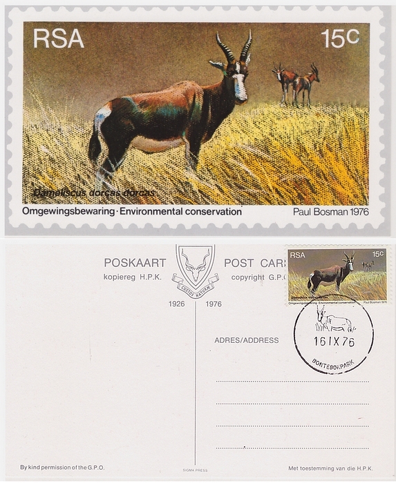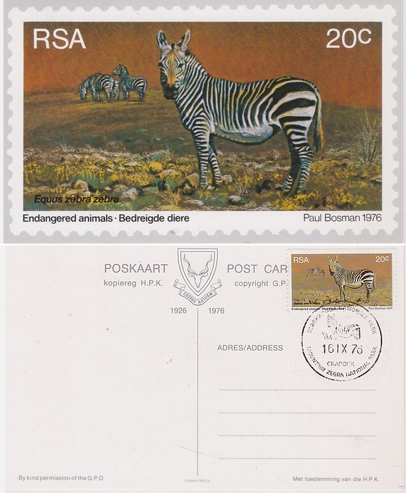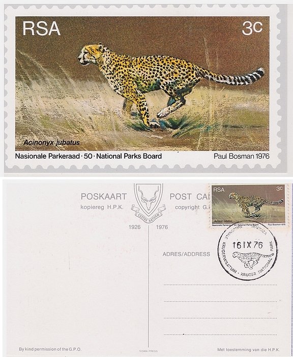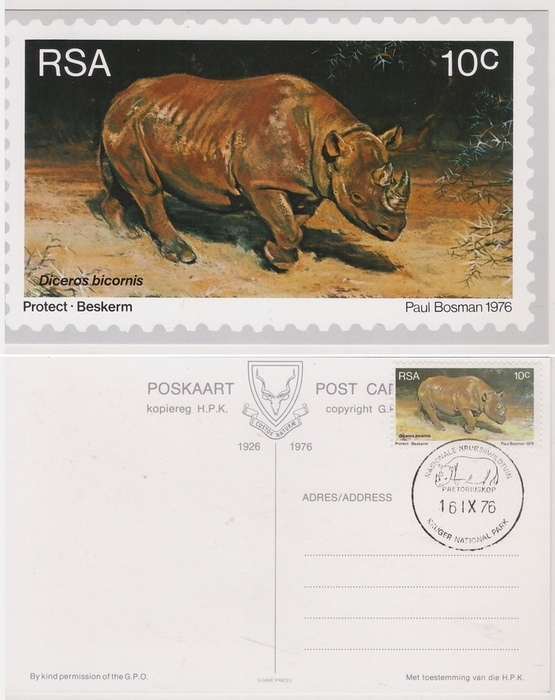 Set of four South African Maxicards. Issued 1976. Depicting RSA stamps issued to commemorate World Environmental and Nature Conservation Year. From paintings by African wildlife artist Paul Bosman.