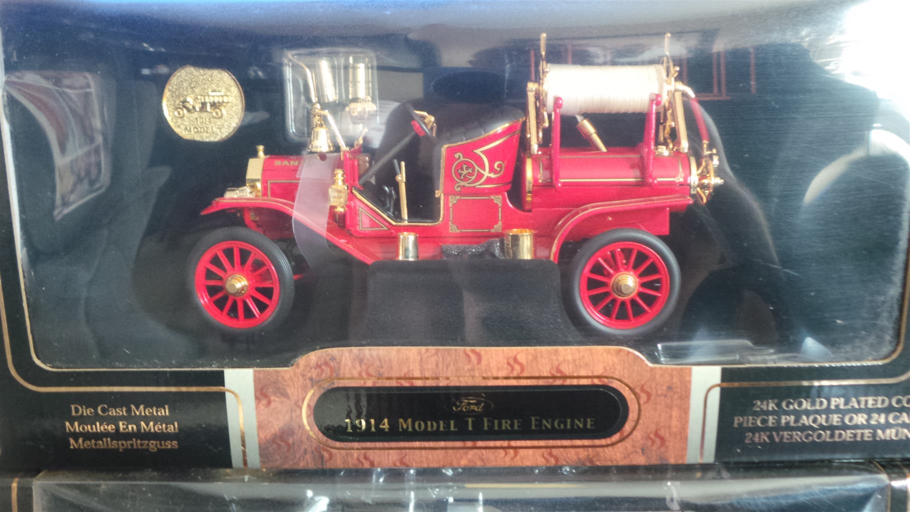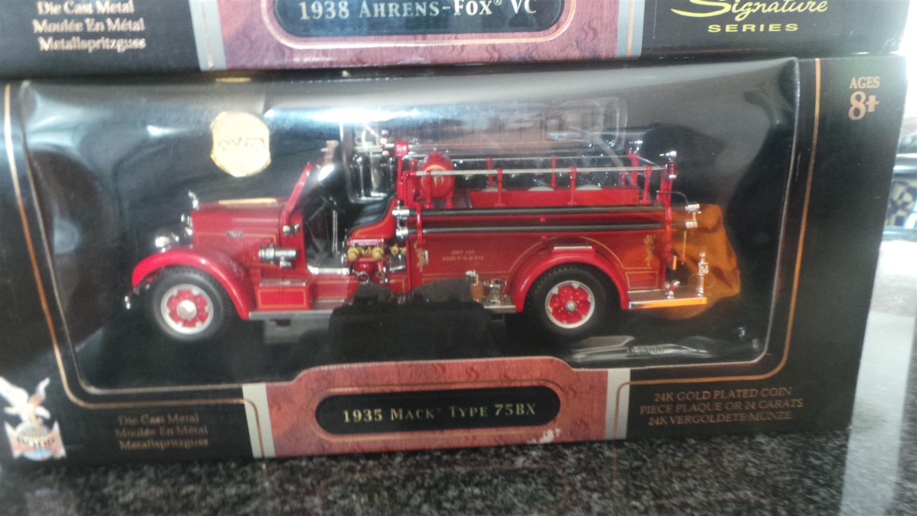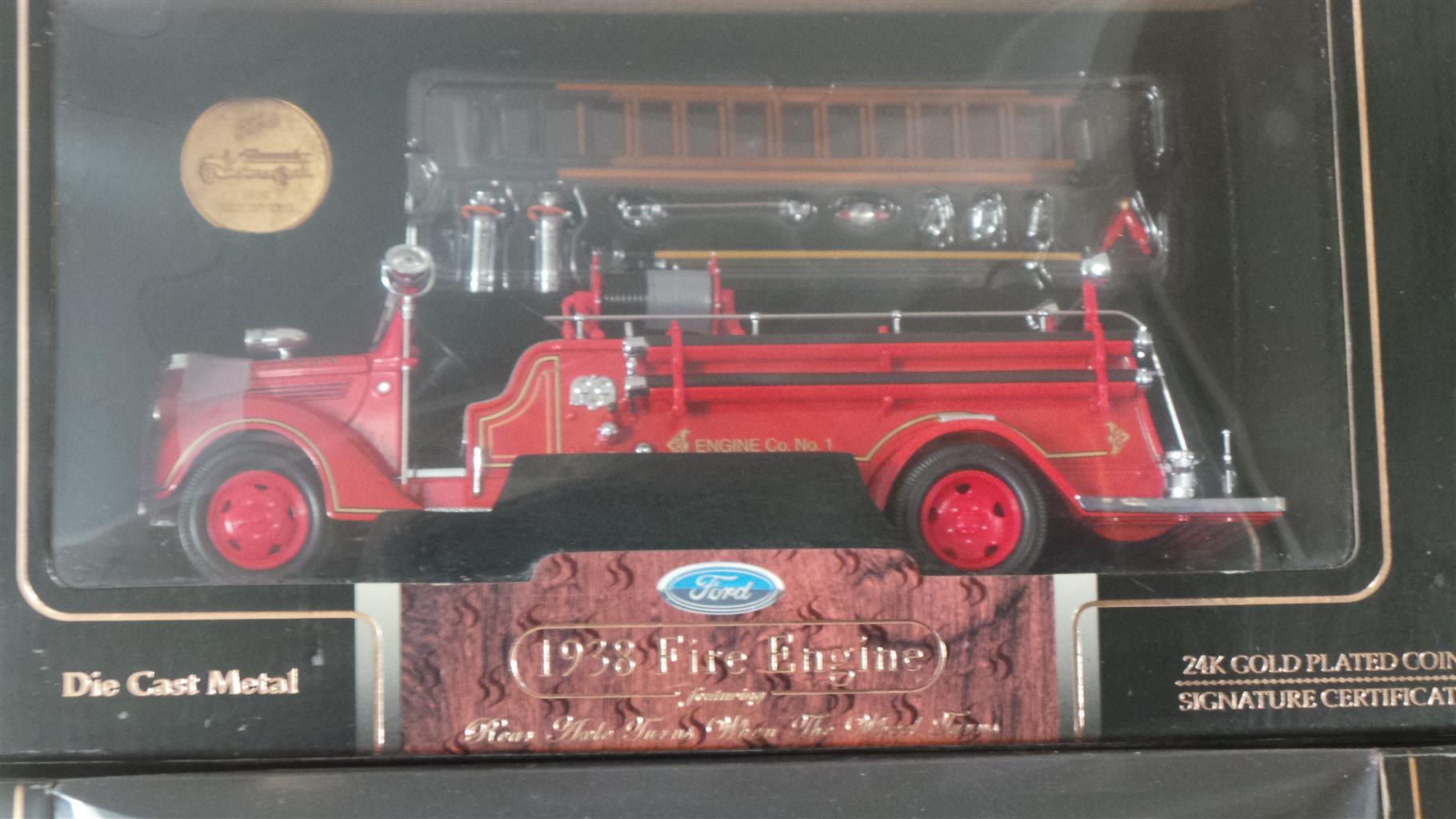 approx 40 diecast fire trucks for sale. 6 with 24ct plated authentication coin. Mostly signature brand and Corgi and Code 3