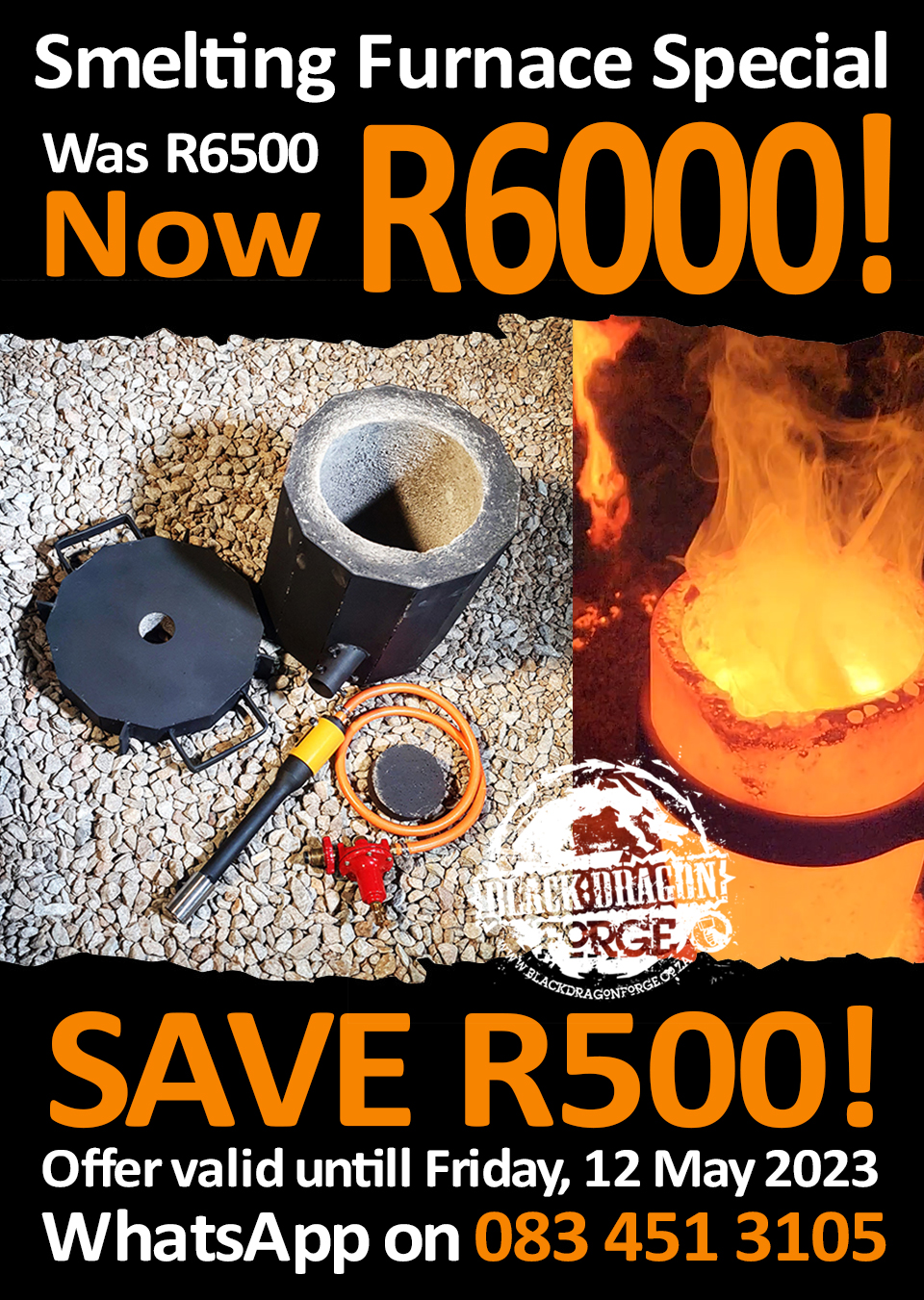 18.5kg LP Gas Smelting Furnace Special! Now R6000 … save R500! Offer valid until Friday, 12 May 2023. Orders via WhatsApp on 083 451 3105view more. A10 crucible not included.