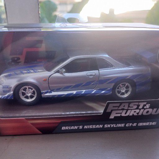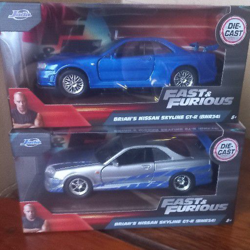 4×Blue4×blue and silver Brians nissan r34 gtr fast and furious die-cast