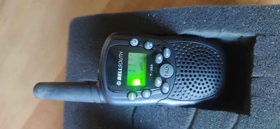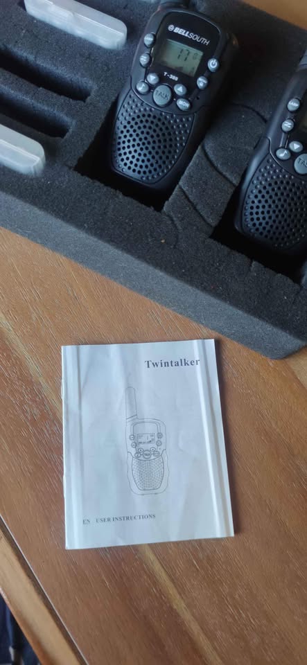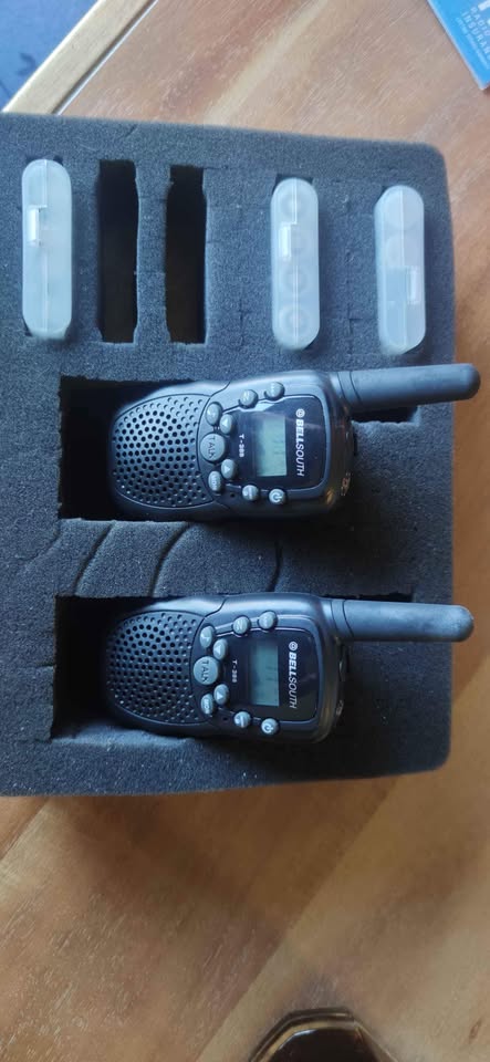 Bell 2 way radios with rechargeable batteries. Model T-388. With booklet. Working perfectly. Case shown is not included but can be sold for an additional R500. Takealot price R1500, my price R800.